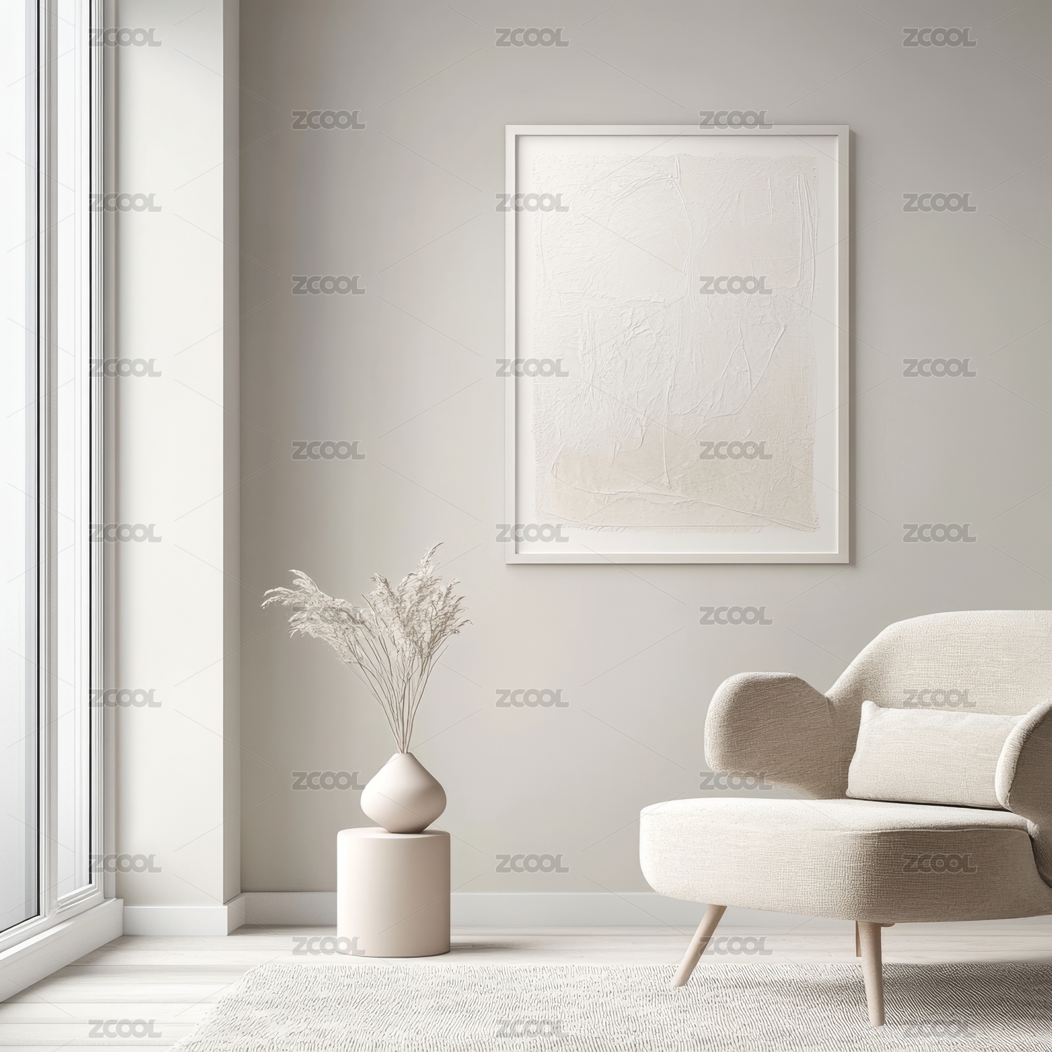 简约室内装饰,绿植与艺术画框