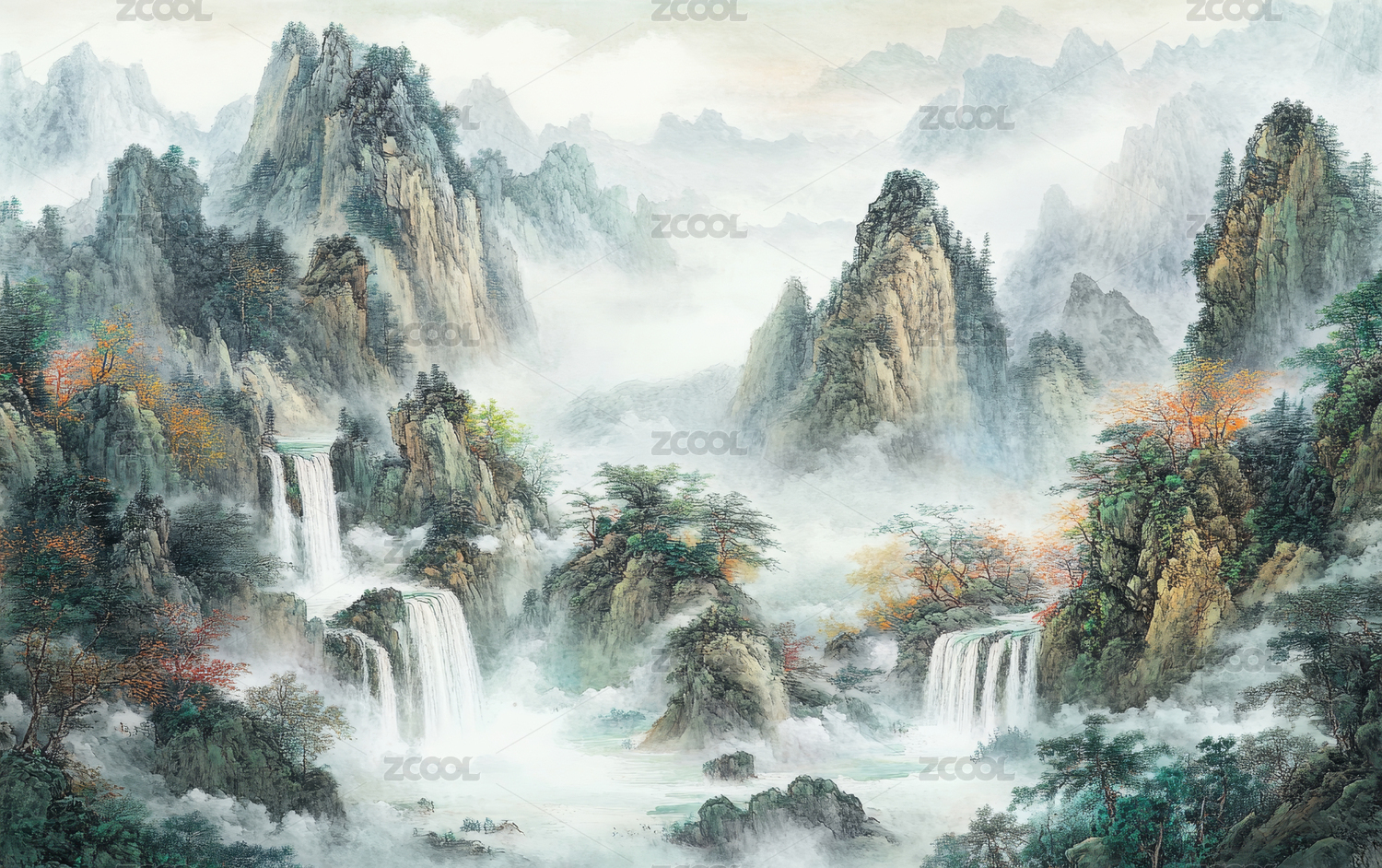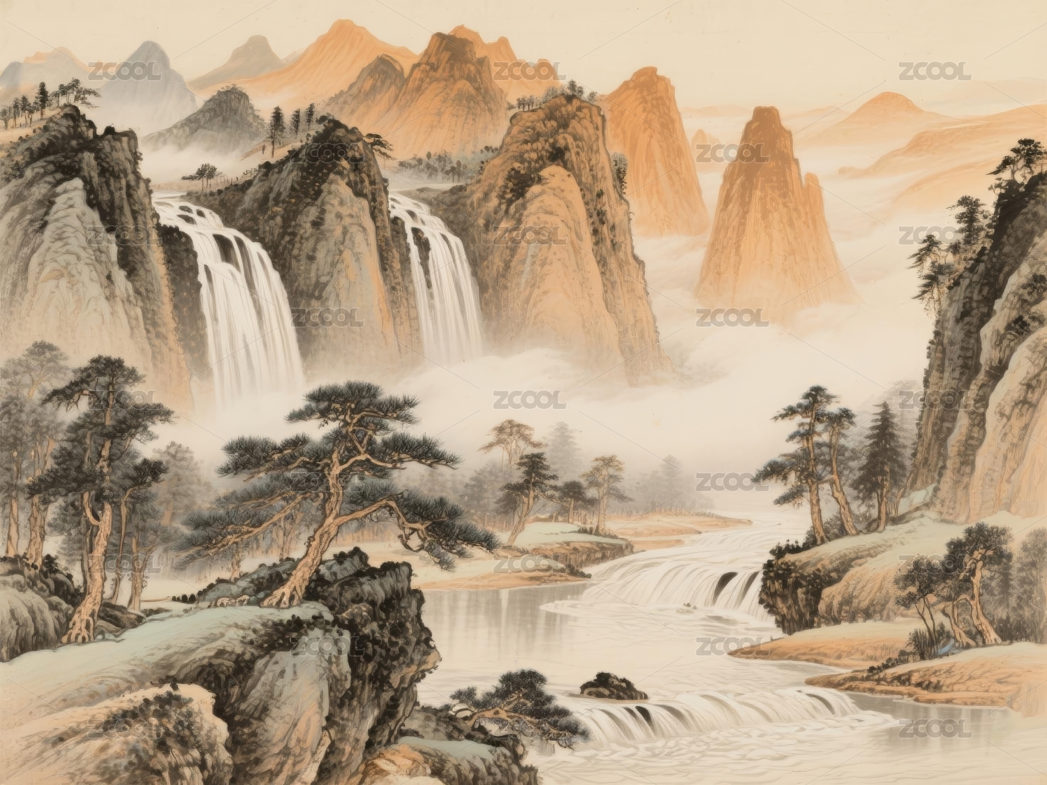 水墨山水瀑布图