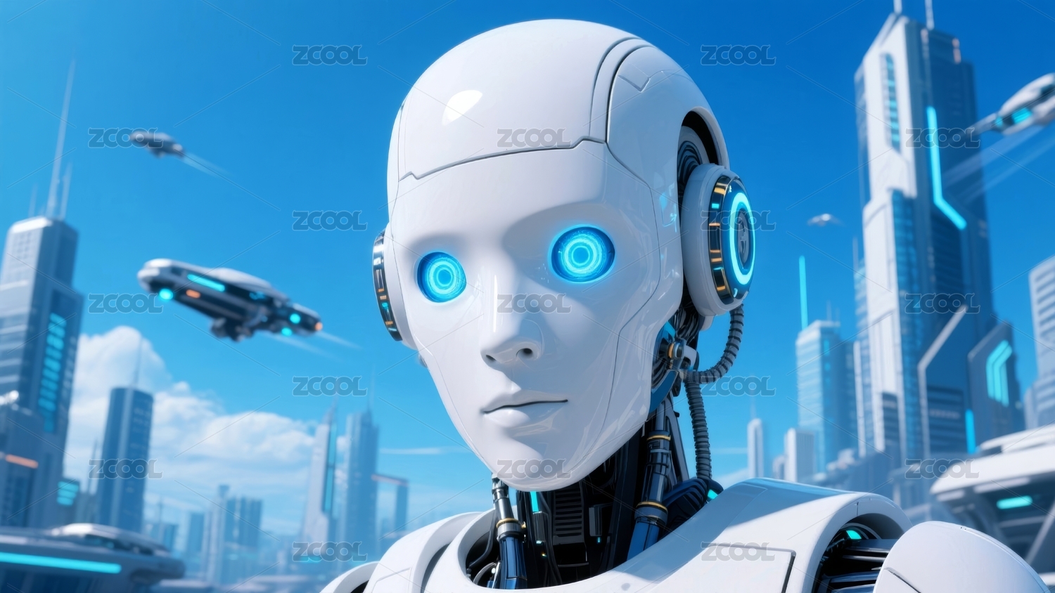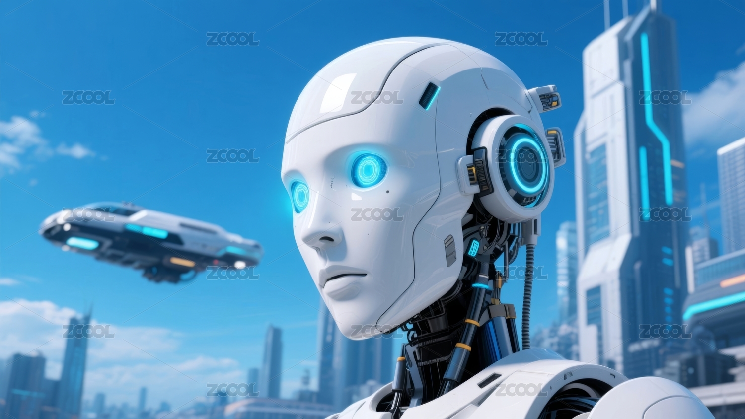 未来城市中的高科技机器人