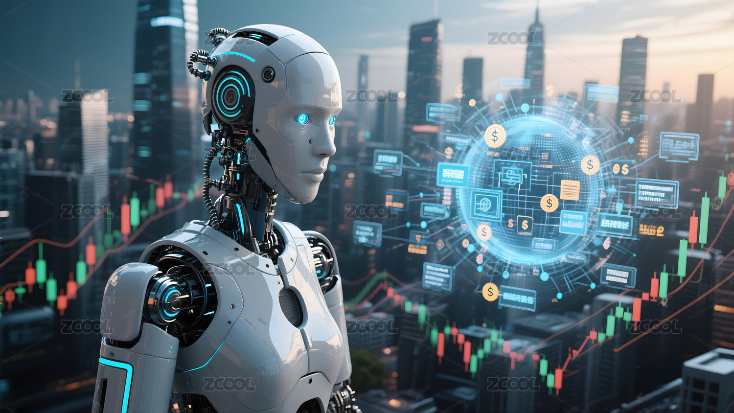 人工智能机器人俯视城市