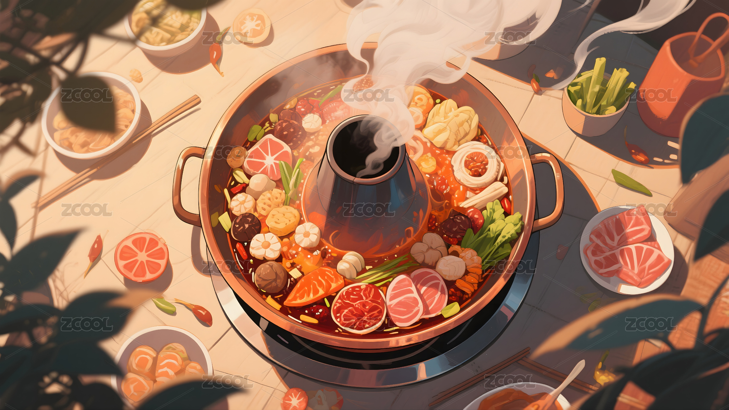热气,家庭,团圆,蘸料,丸子,暖冬,餐饮,菌菇,蔬菜,美食