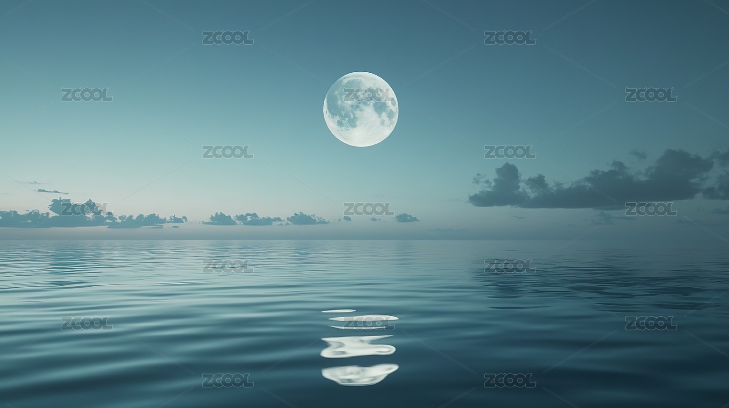 宁静海面与明亮满月