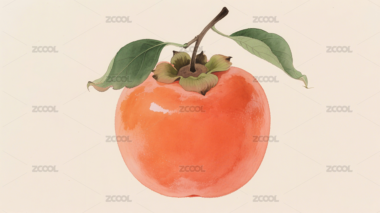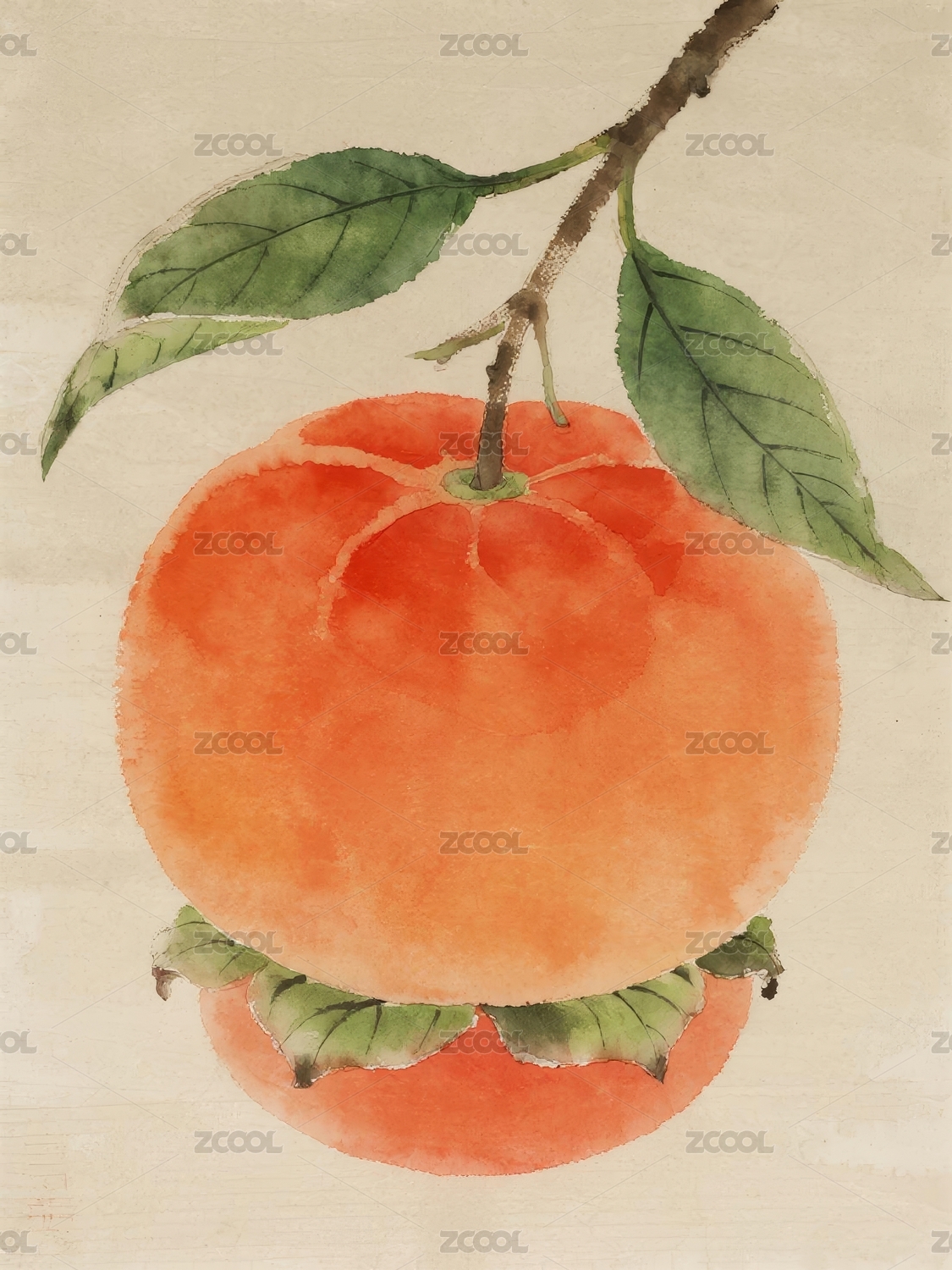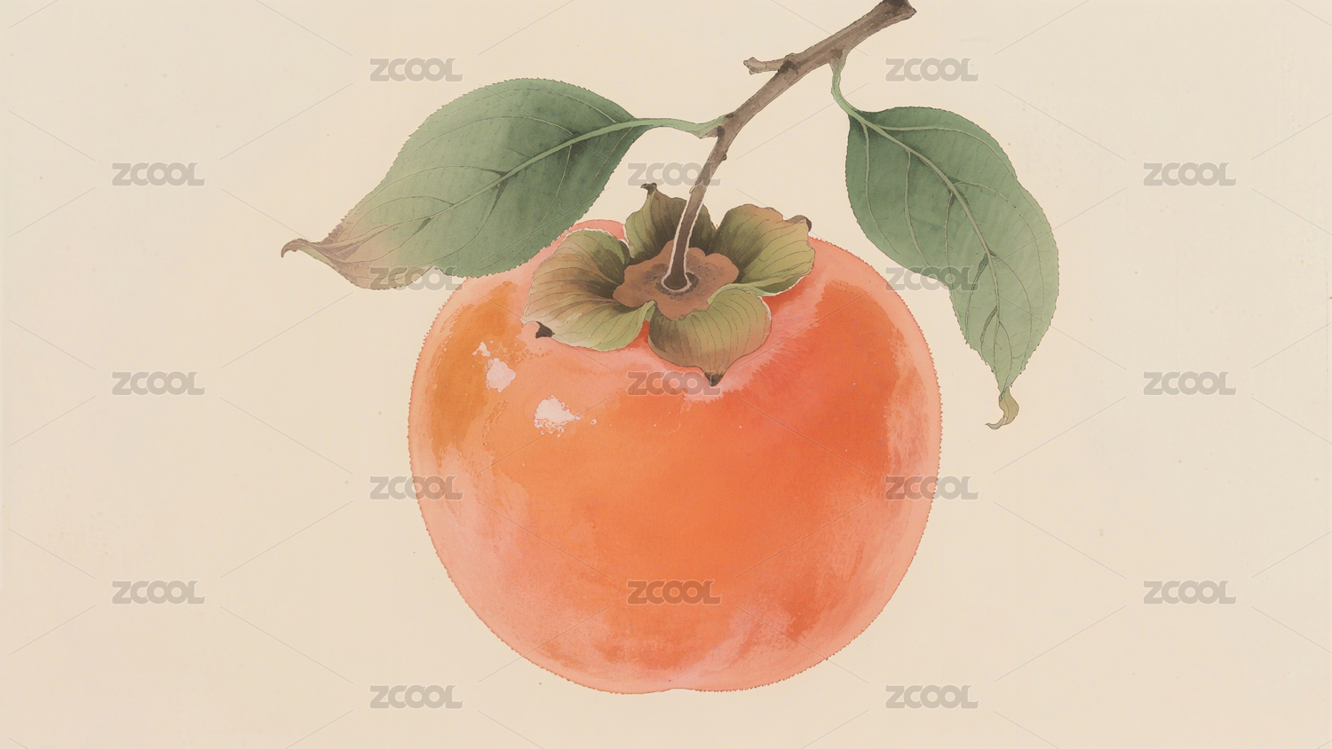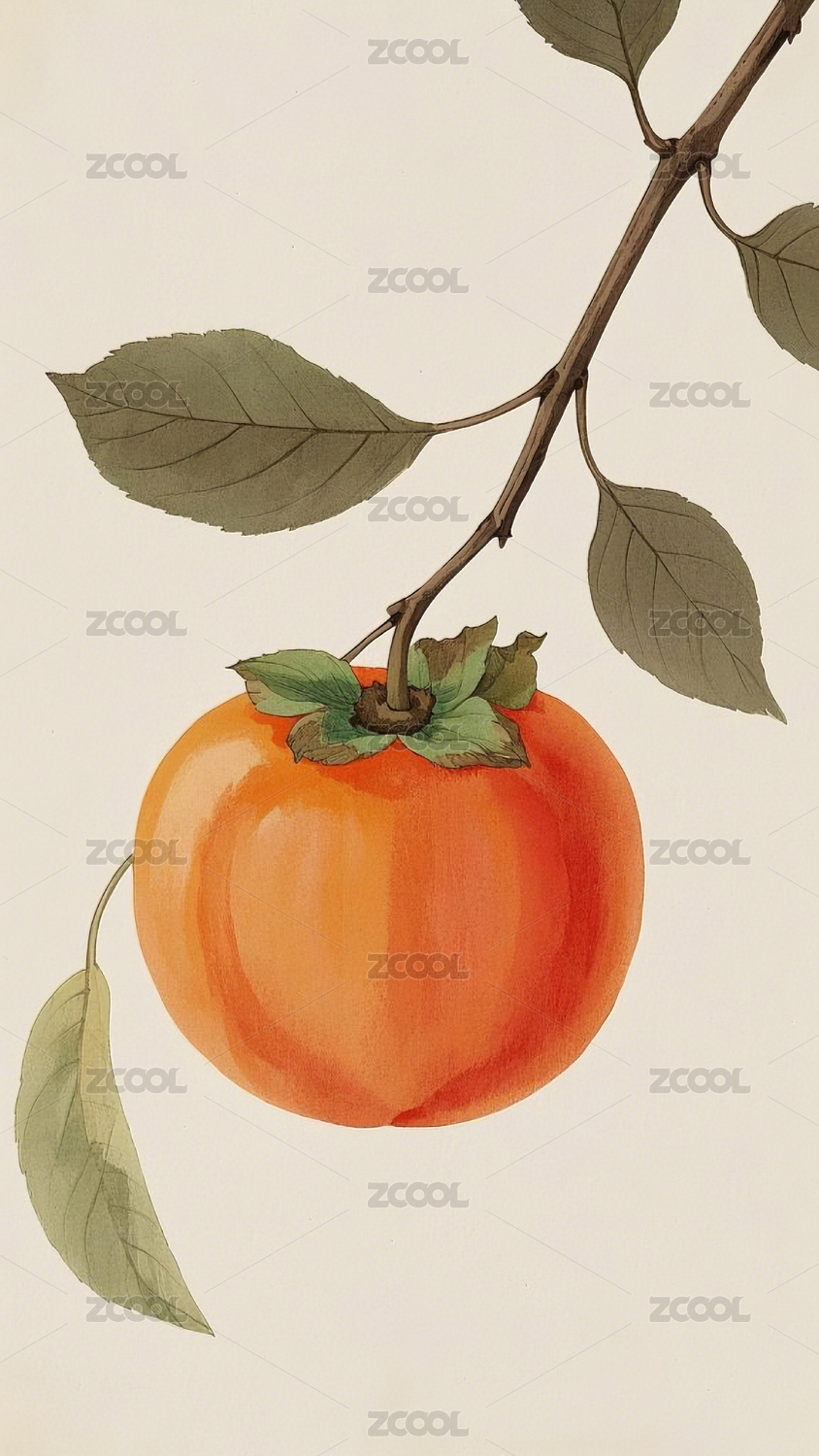 中国风,水墨,橙色,柿子,传统,古风,秋天,美味