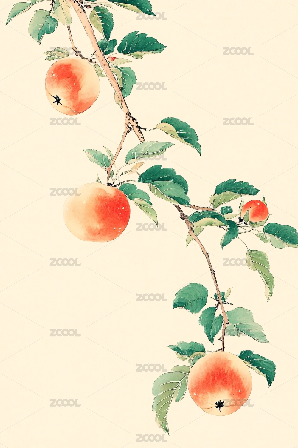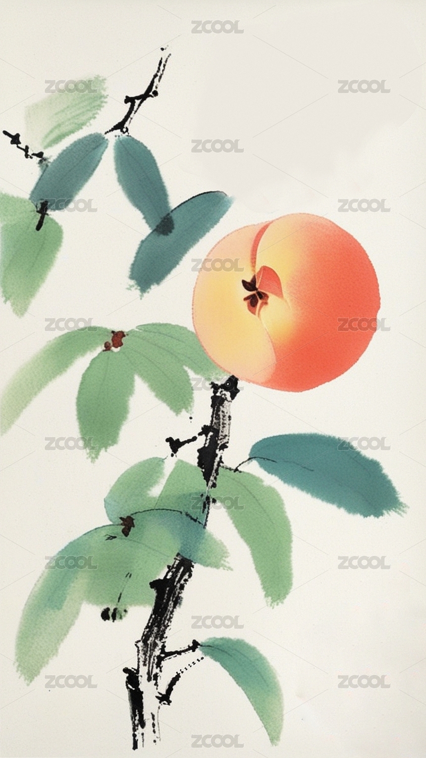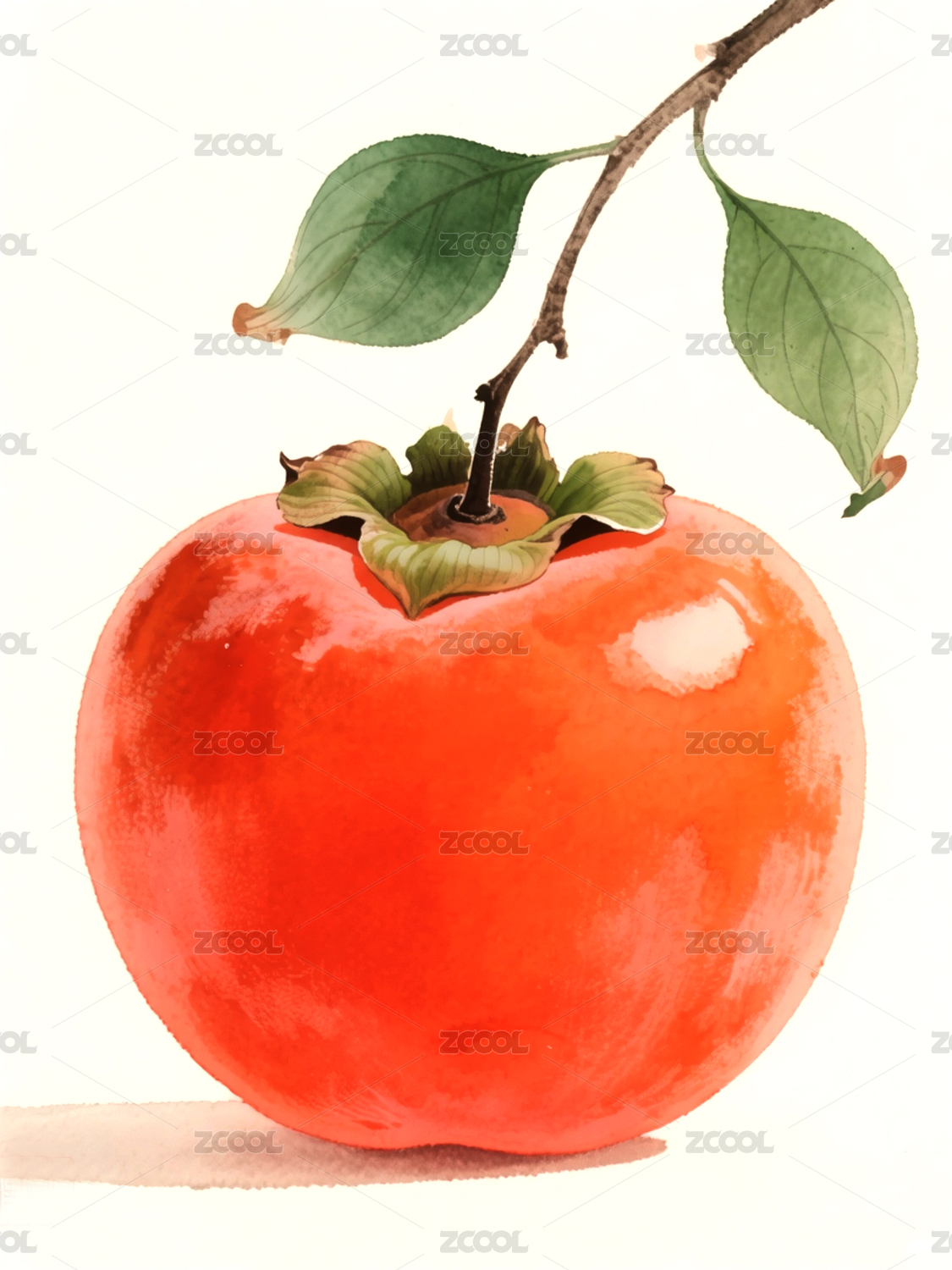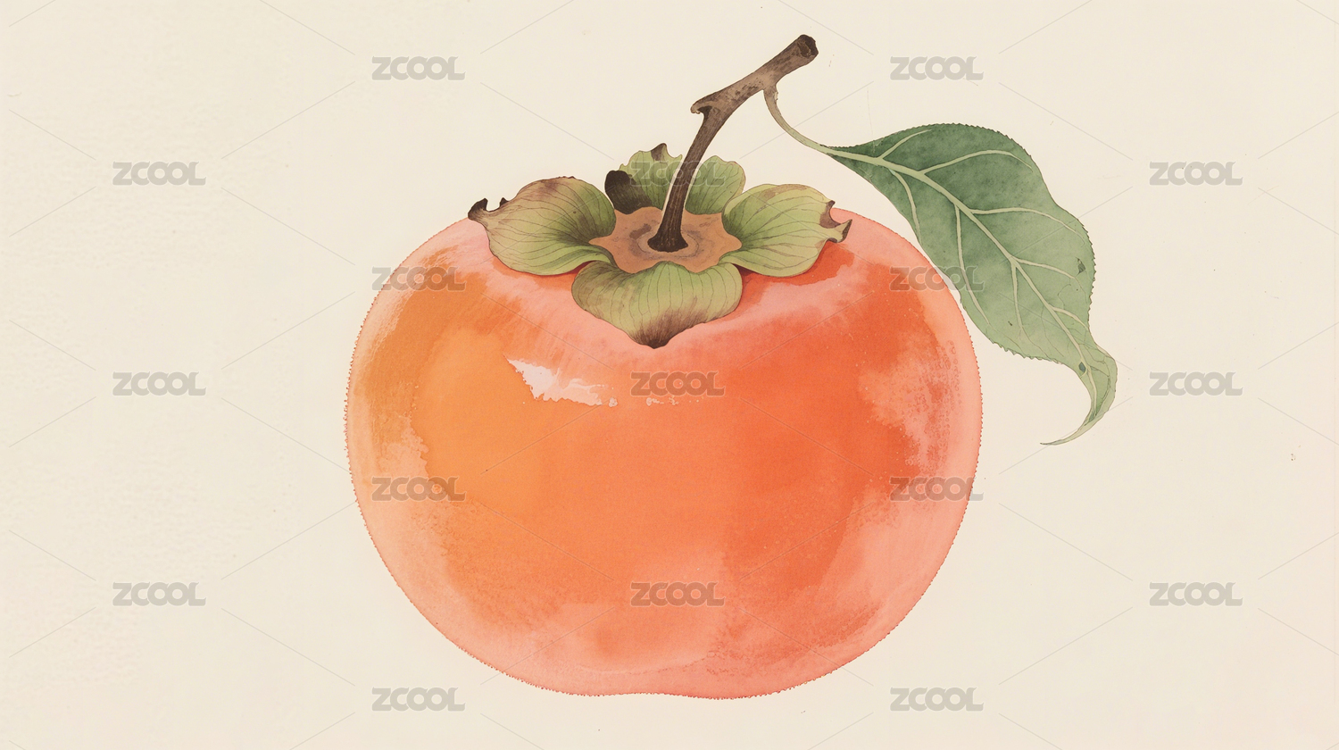 中国风,水墨,橙色,柿子,传统,古风,秋天,美味