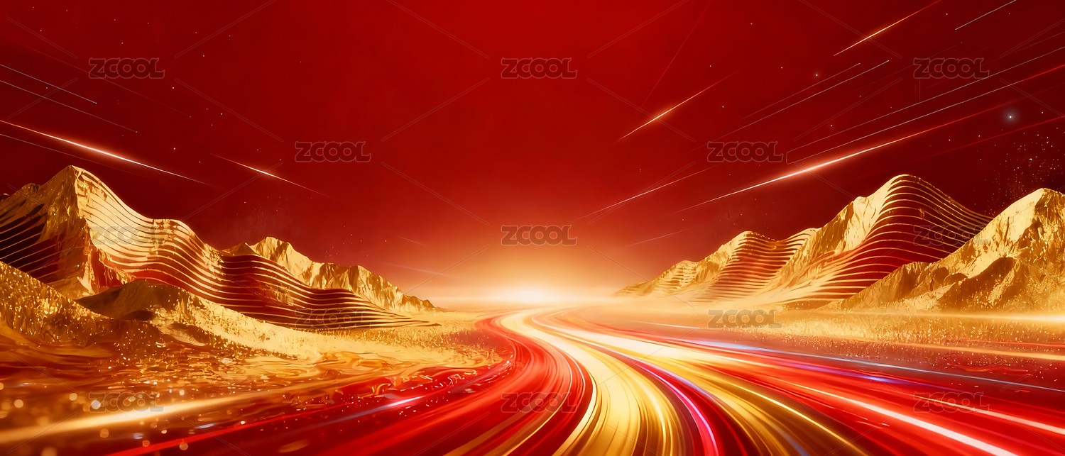 红色光路与金色波浪