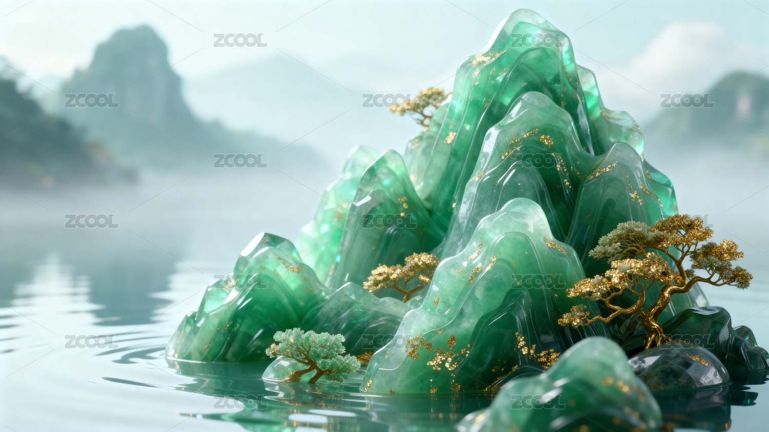 清新明亮羊毛毡毛绒山水风景3D卡通插画