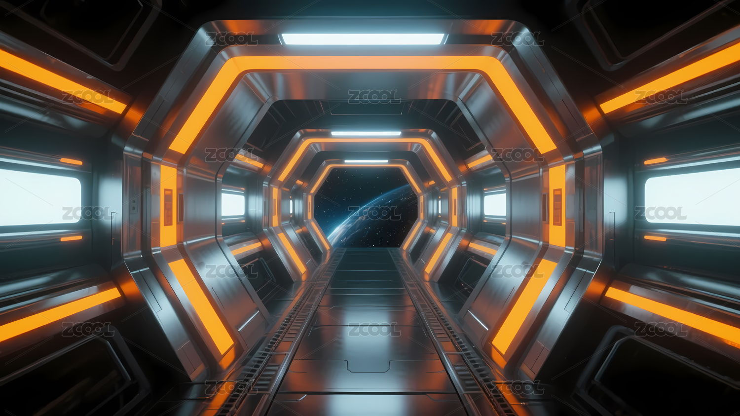 未来科技飞船内部走廊