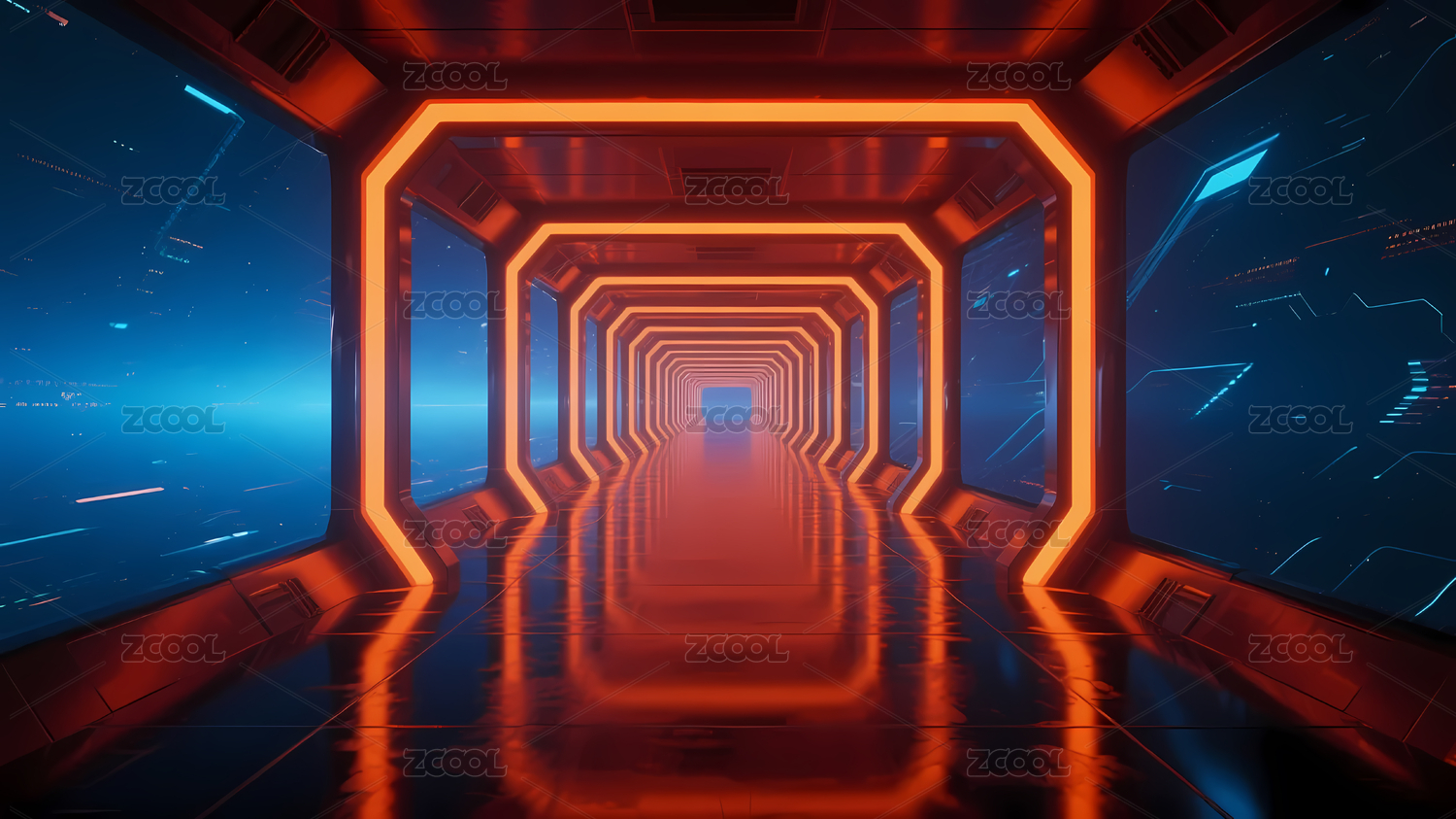 蓝色,科幻,灯光,橙色,星空,未来,科技,氛围,走廊,太空