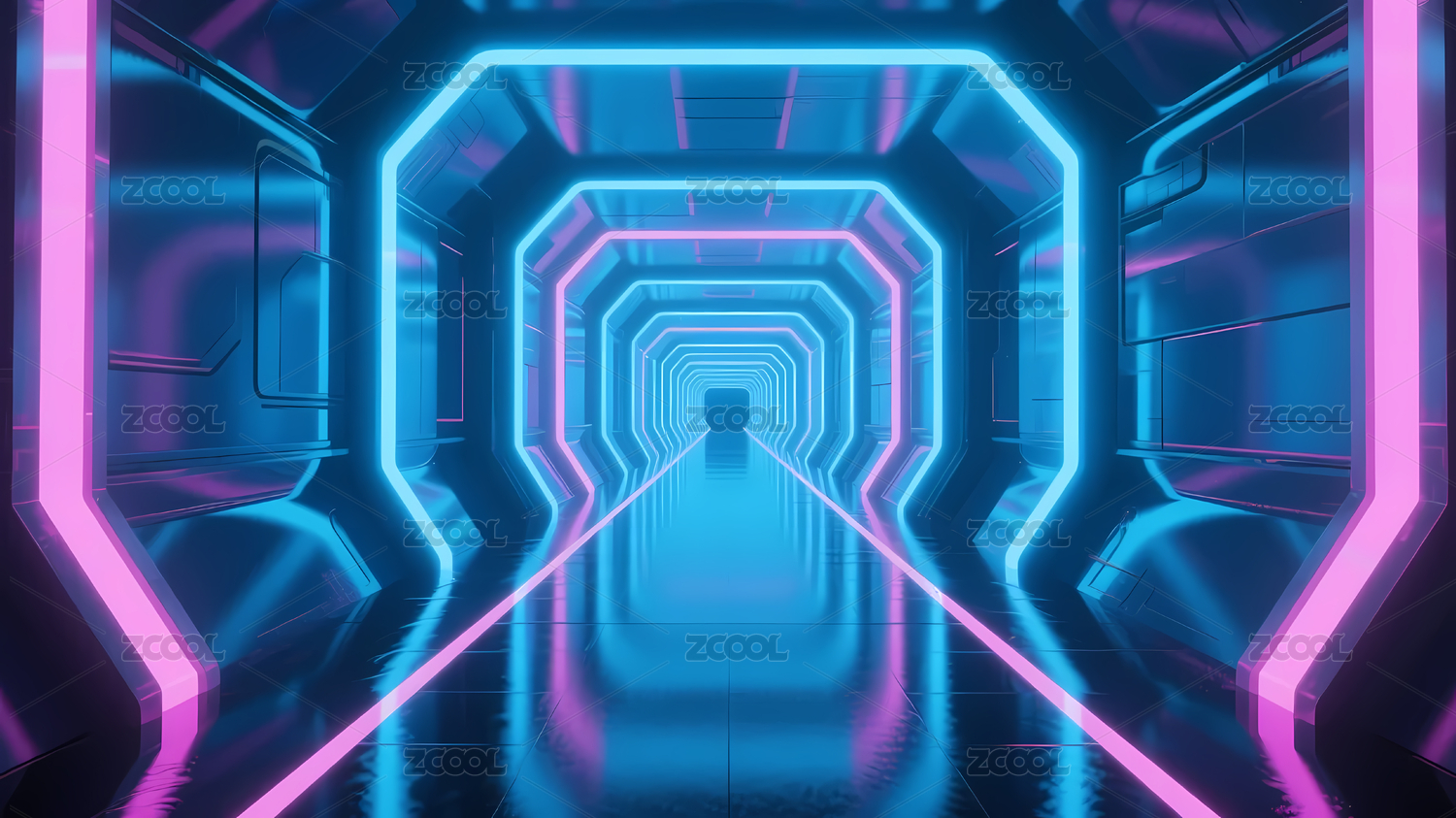 背景,粉色,蓝色,金属,未来,隧道,霓虹灯,墙壁,地板,科幻