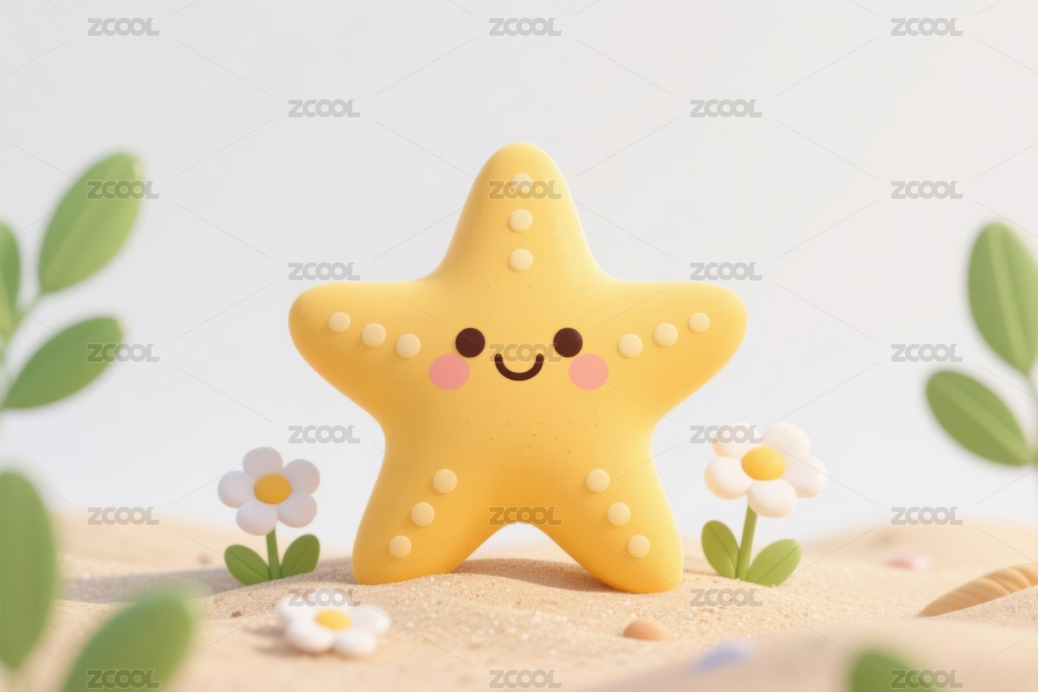 黄色海星可爱风沙滩场景