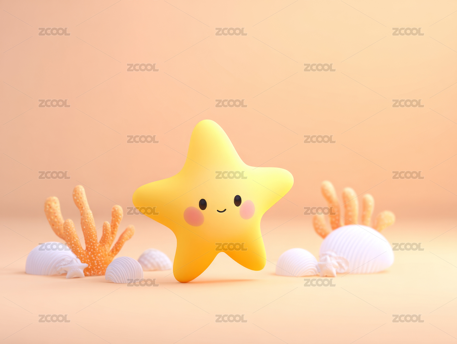 可爱海星与珊瑚贝壳