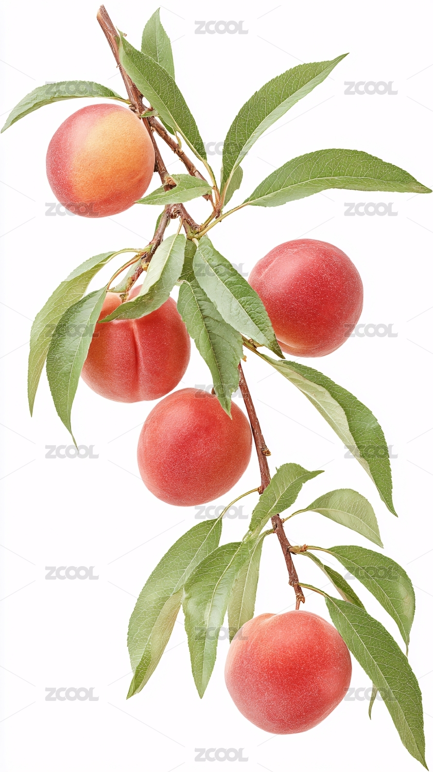桃子,枝叶,插画,水果,植物,主题元素,清新,自然,果实,模板