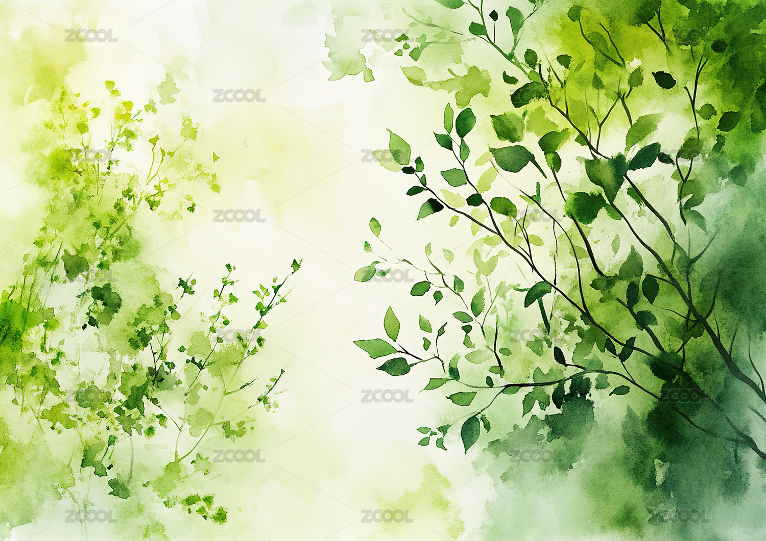 水彩风格绿色树叶背景图
