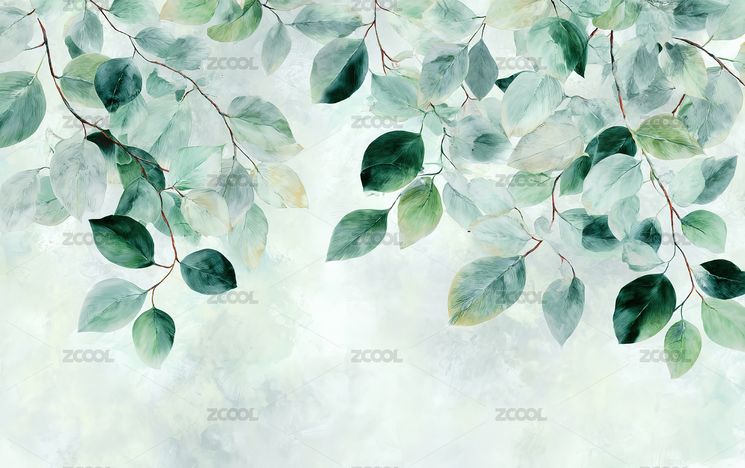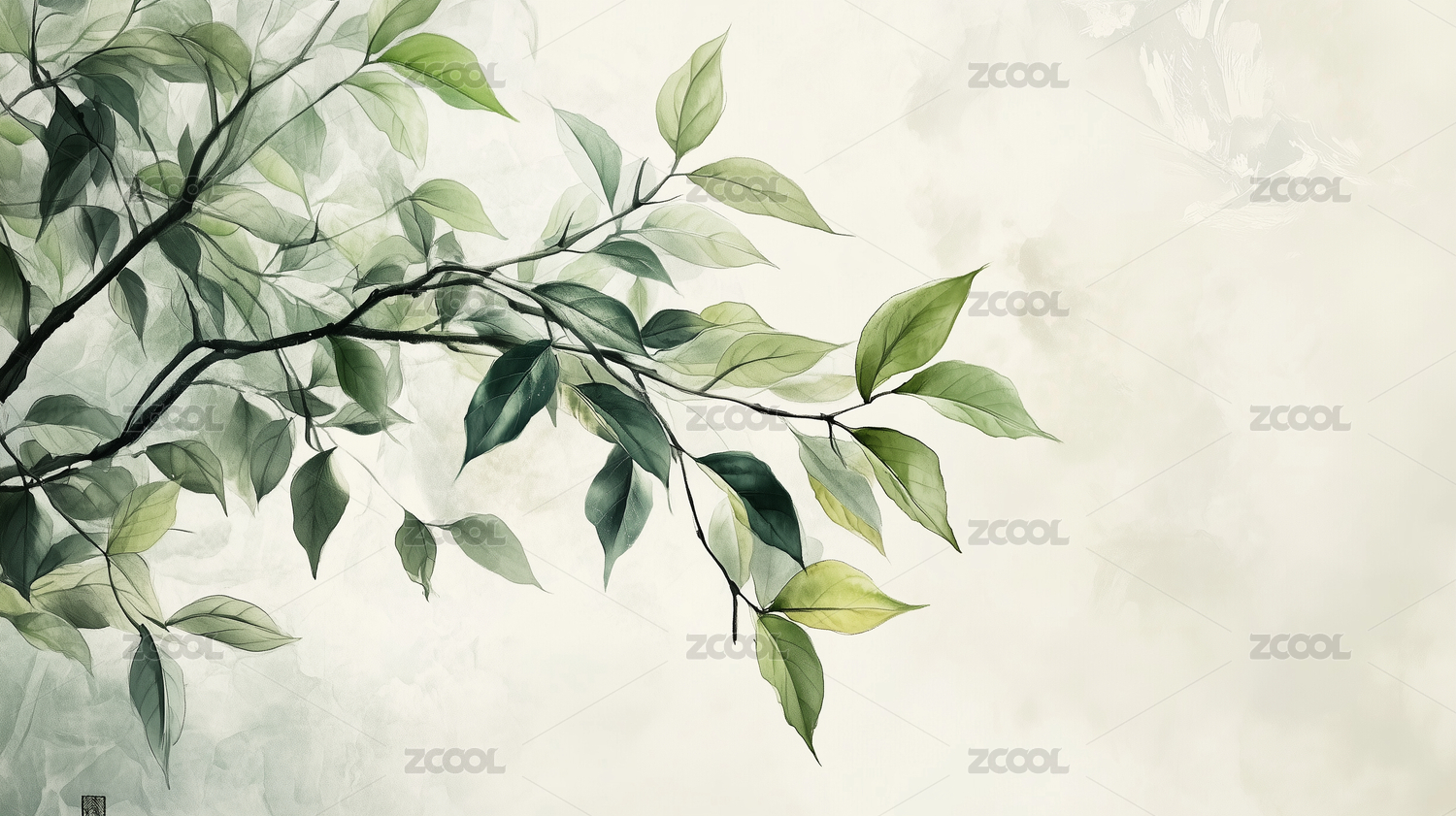 水彩风格的绿叶枝条