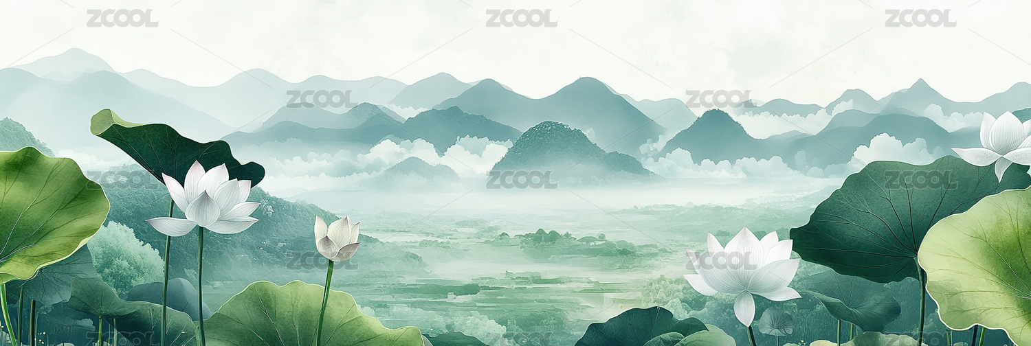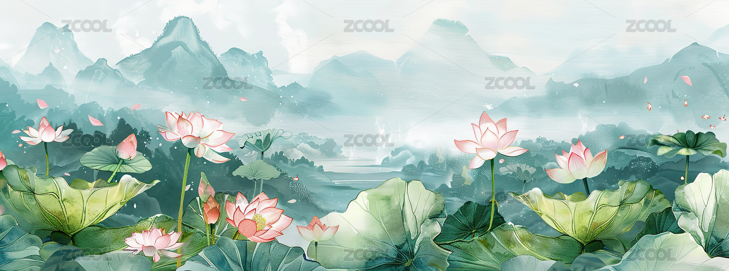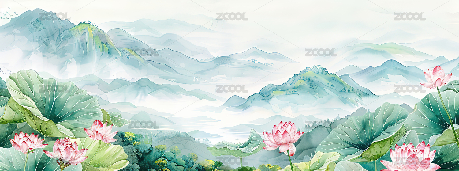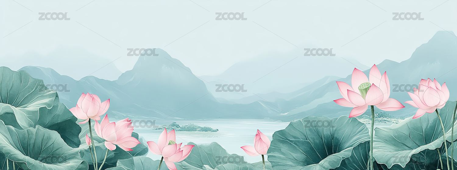 国风淡雅荷花荷叶插画背景