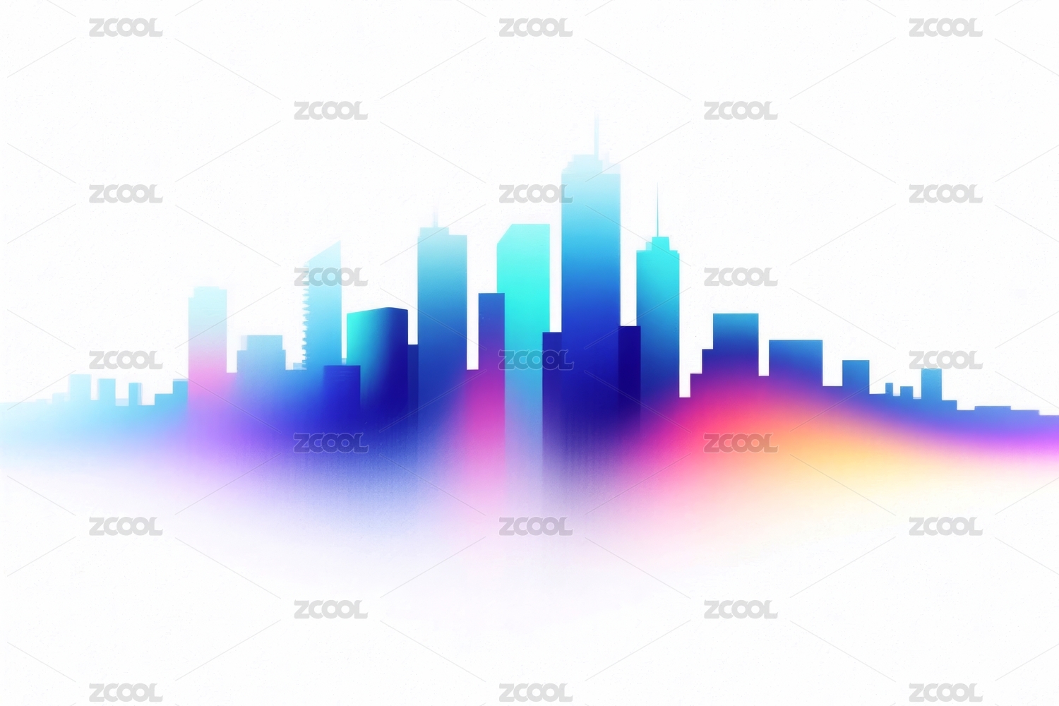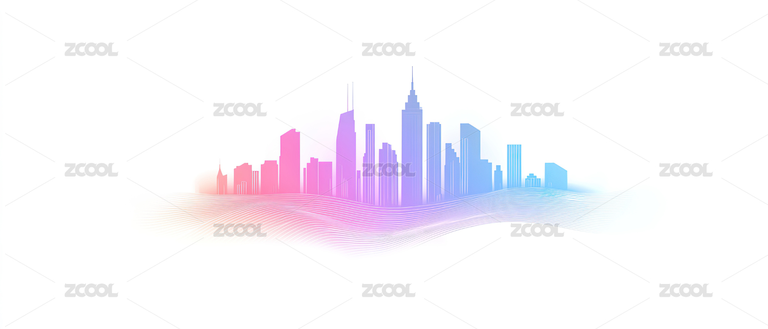 炫彩渐变弥散轮廓几何城市剪影