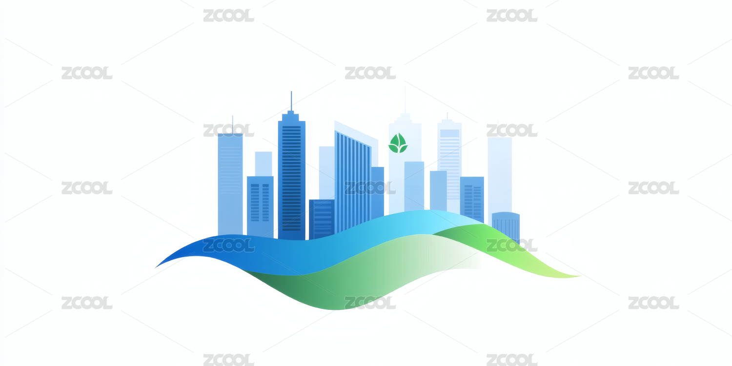 绿色与蓝色融合的城市剪影设计