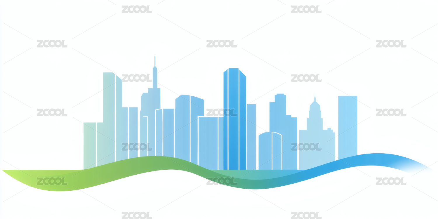 城市天际线与绿色波浪背景
