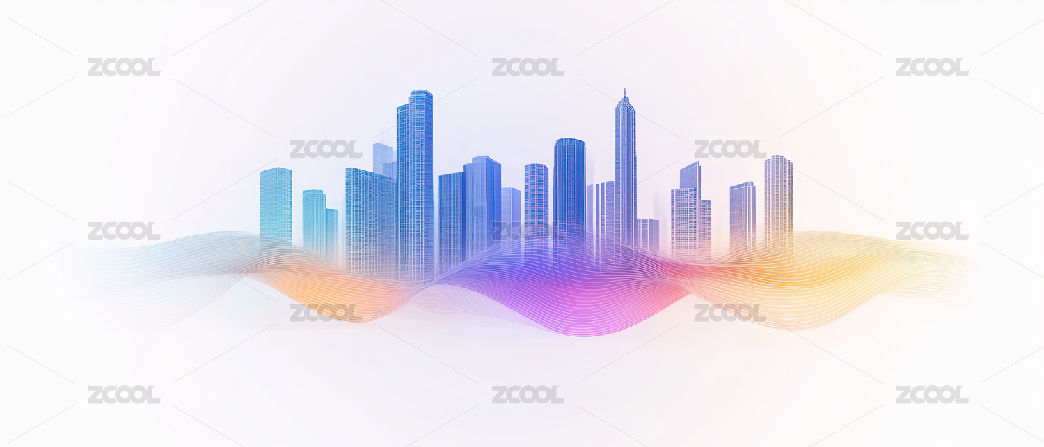 多彩城市建筑弯曲线条背景