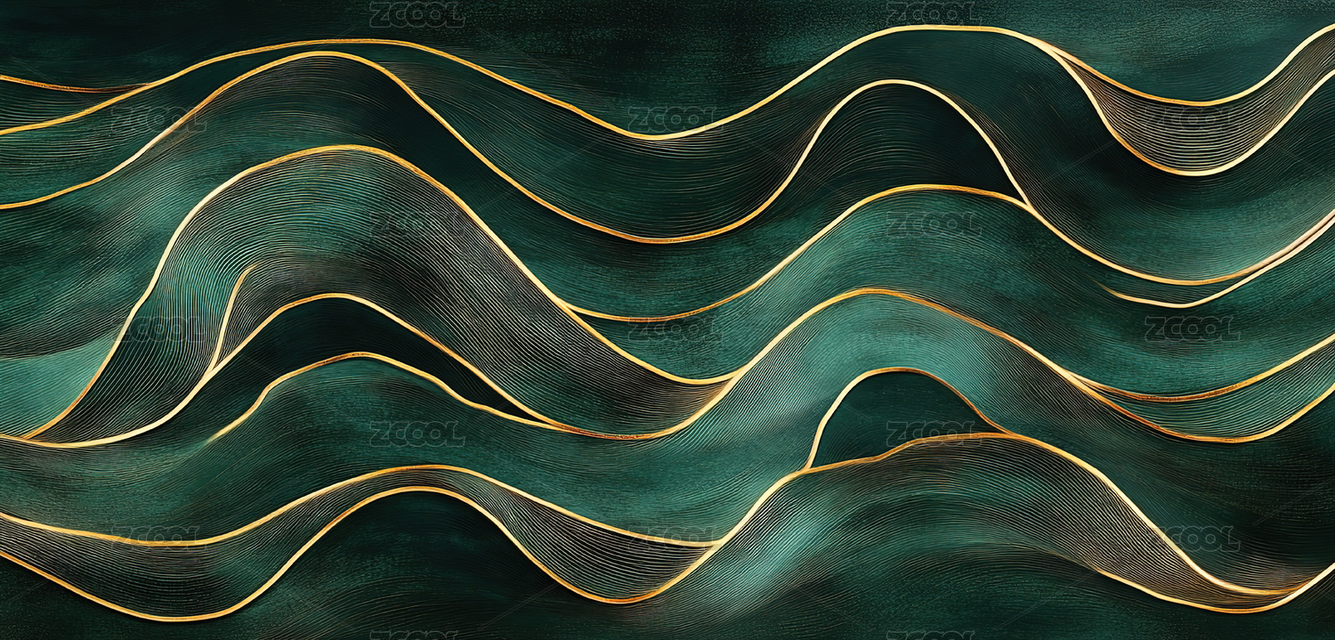 蓝金交织的抽象波浪图案