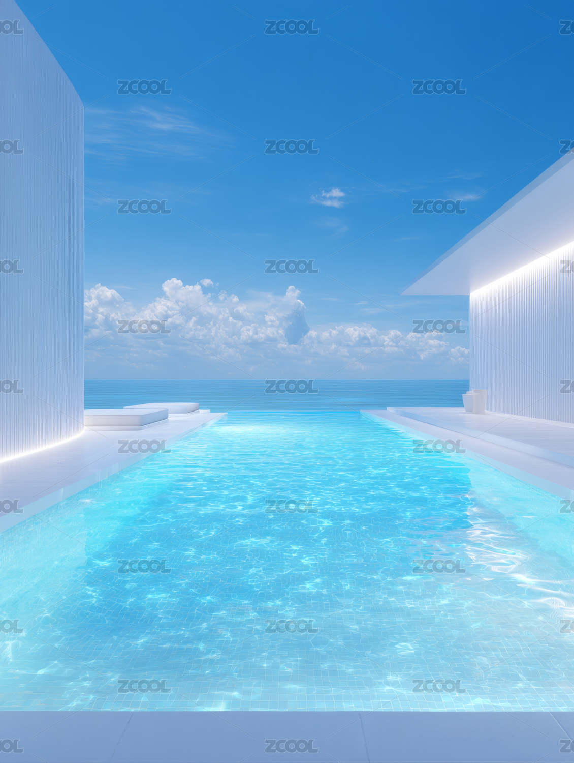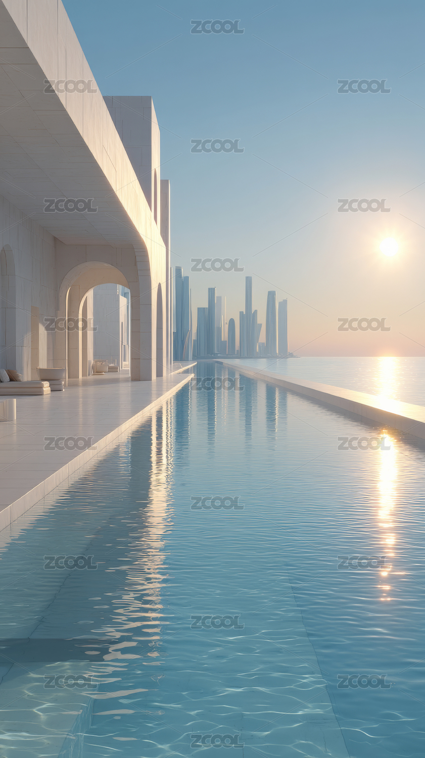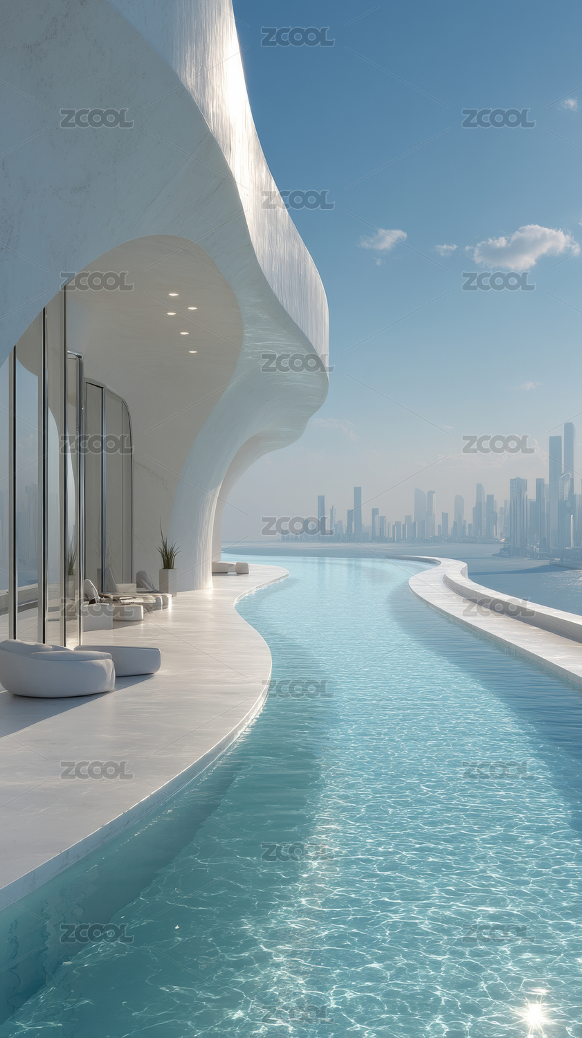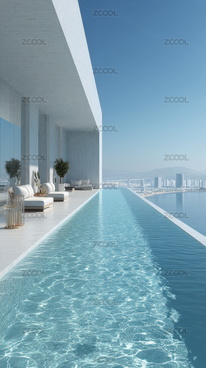 现代泳池海边风光