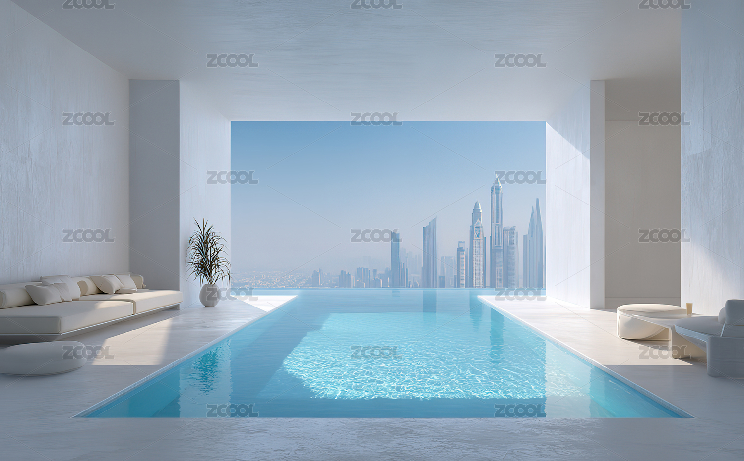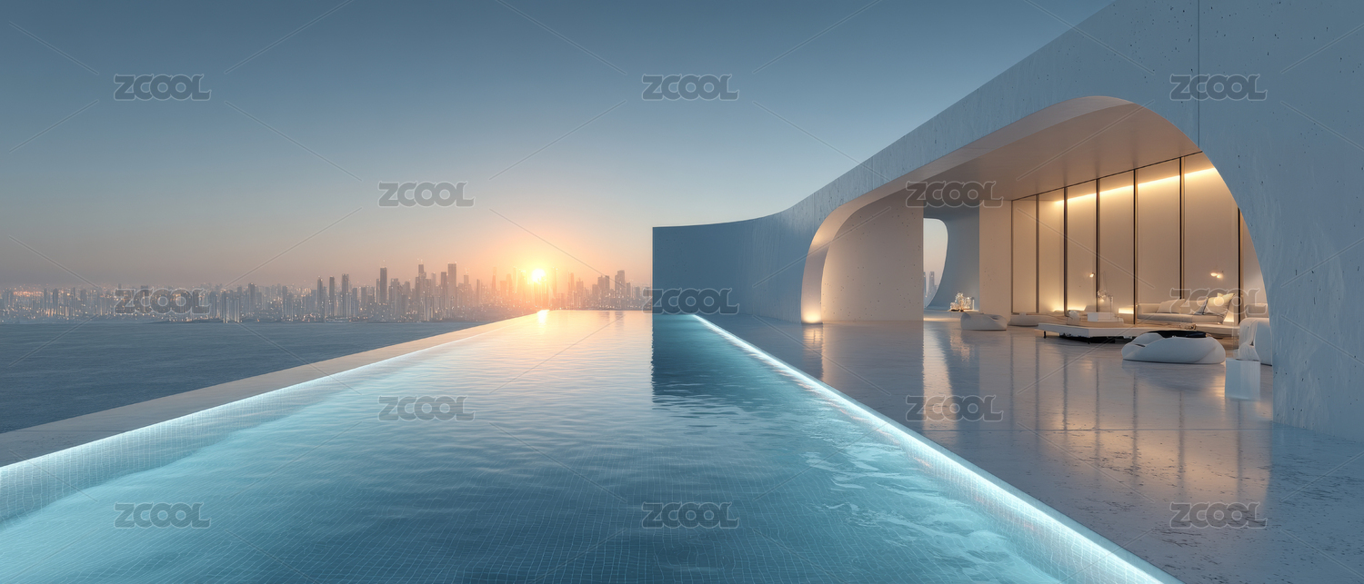 室内泳池与城市天际线