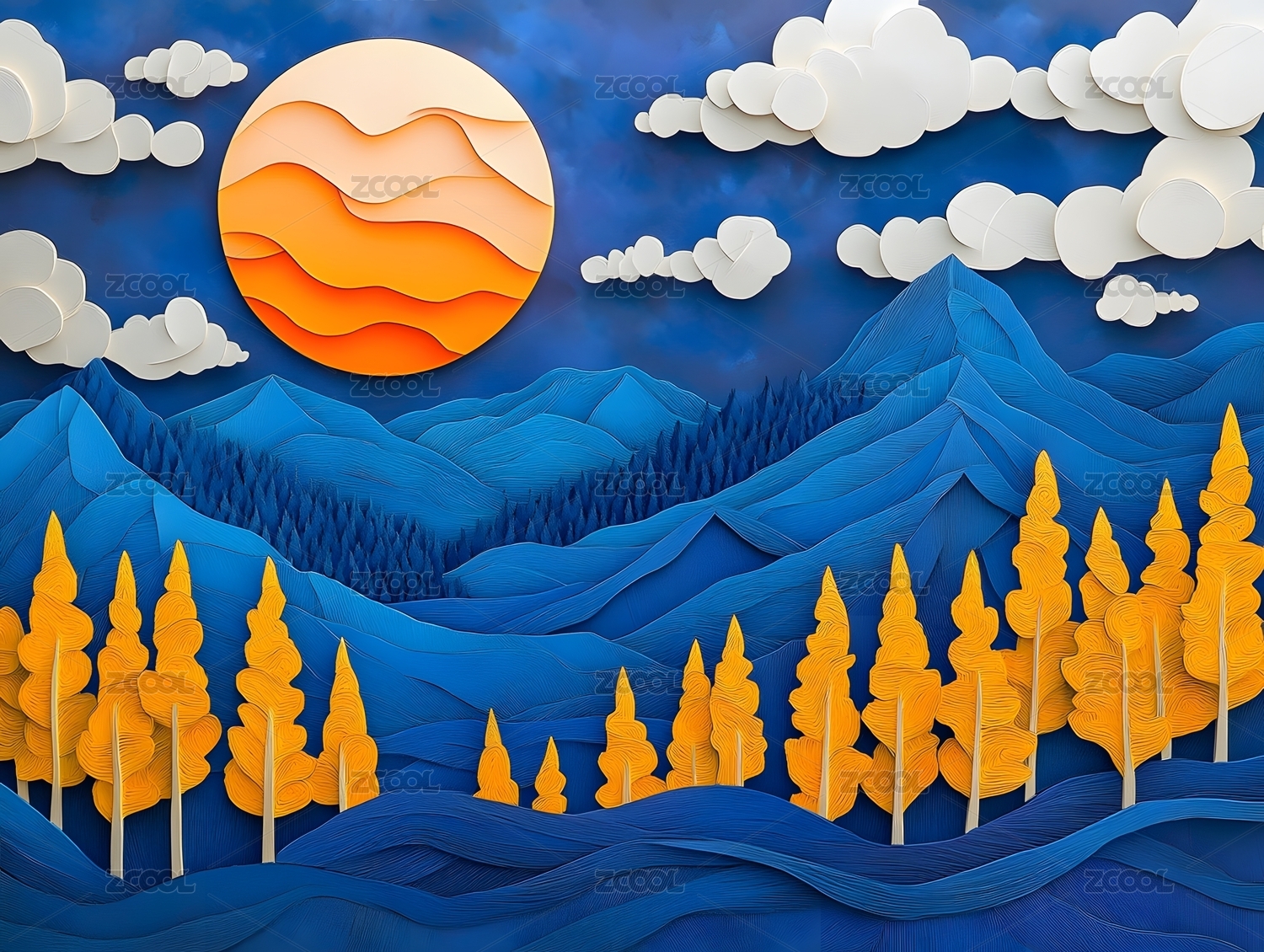 梦幻纸艺山峦夜色图