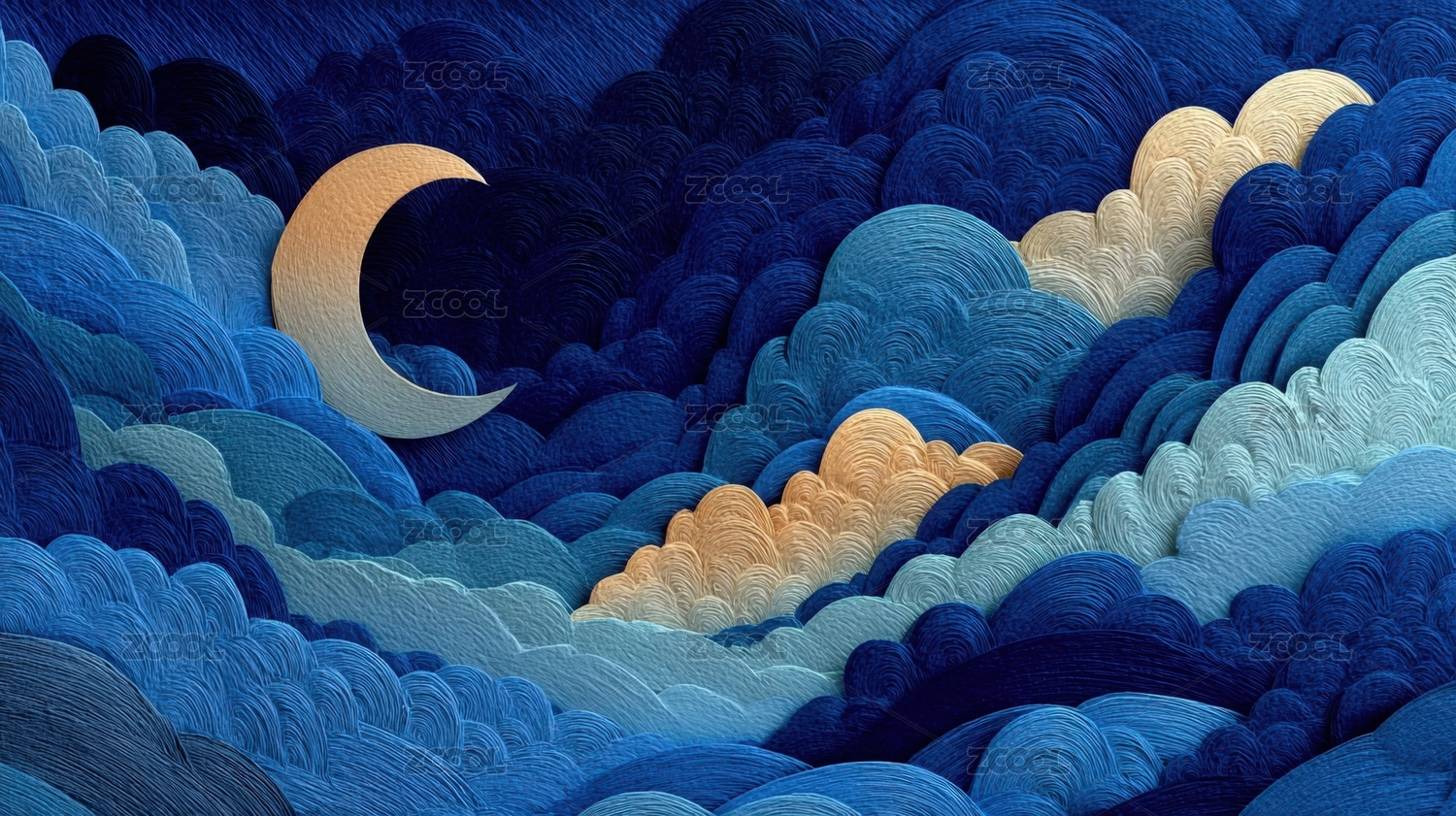 夜空中的弯月与云朵