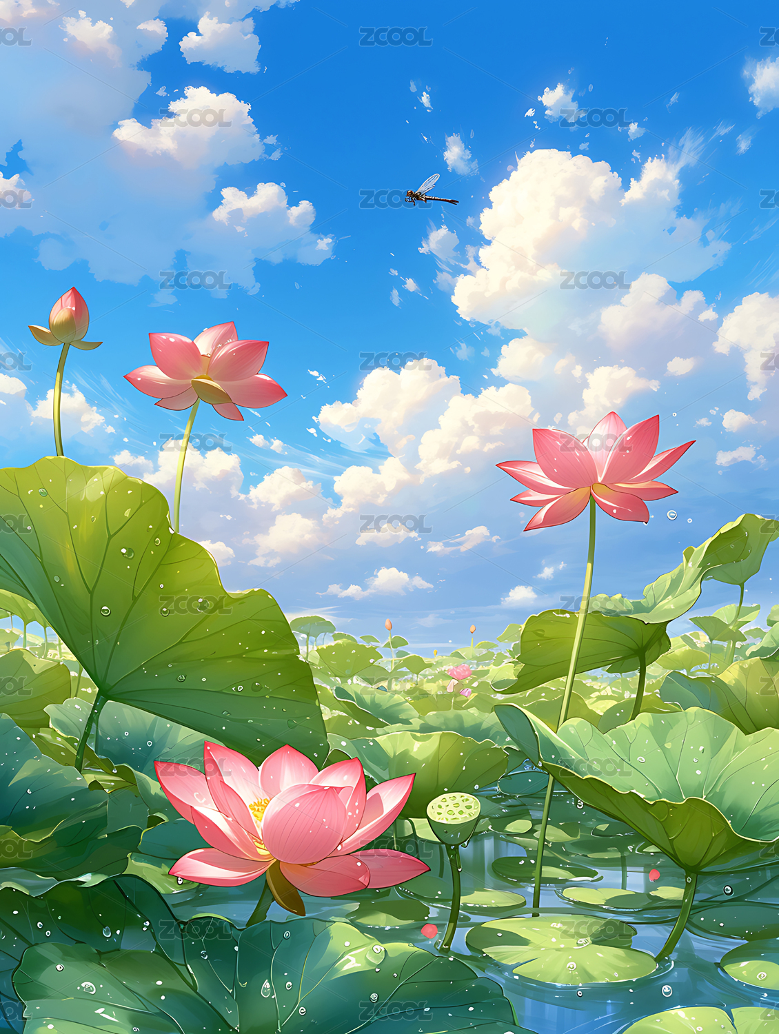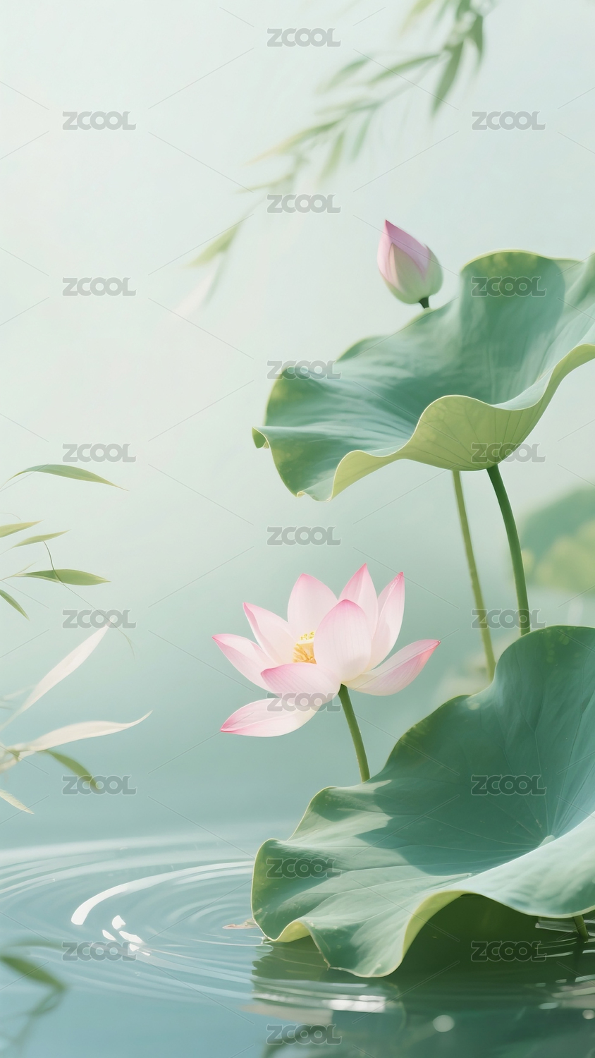 荷花,莲花,池塘,水面,荷叶,花苞,倒影,水波,清新,唯美