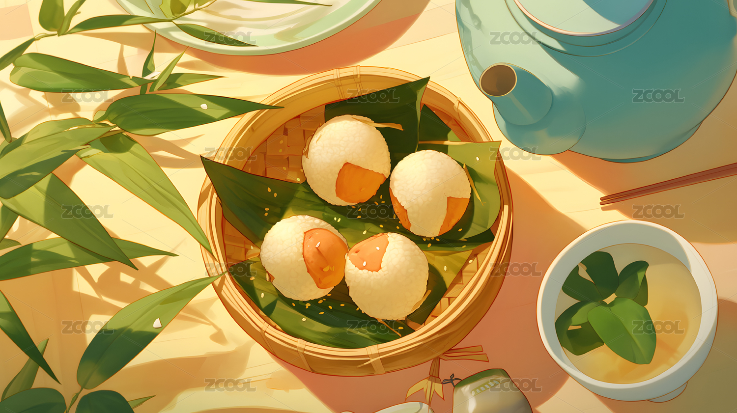蒸笼里的包子桂花糕和菊花重阳节插画