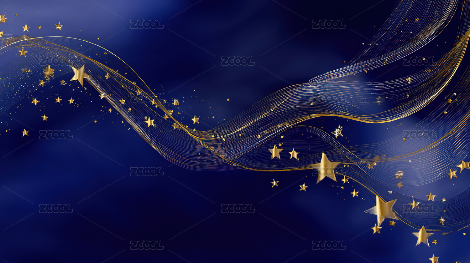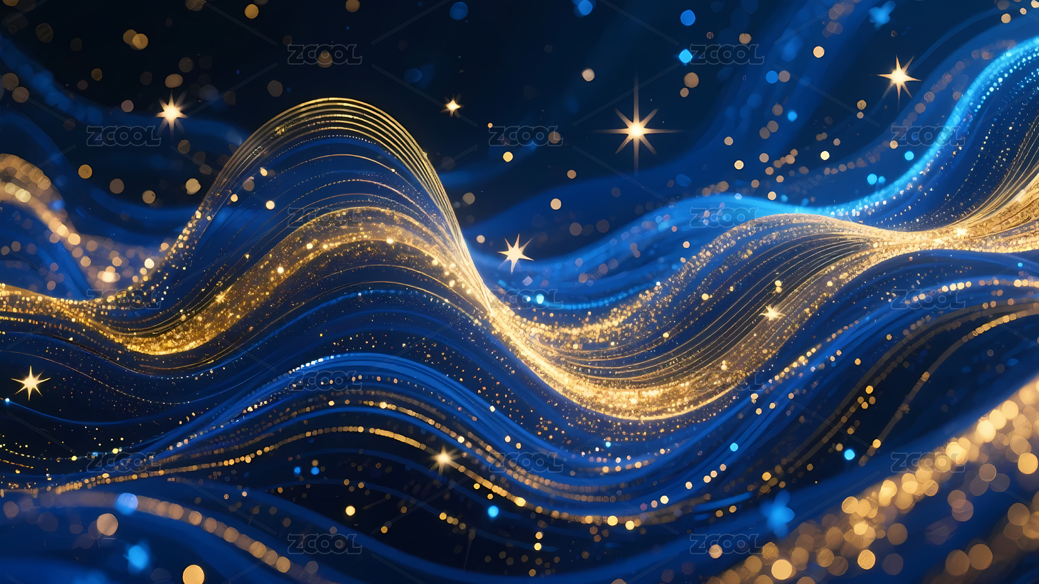 背景,金色,光斑,深蓝,蓝色,星星,星空,图案,波浪,华丽