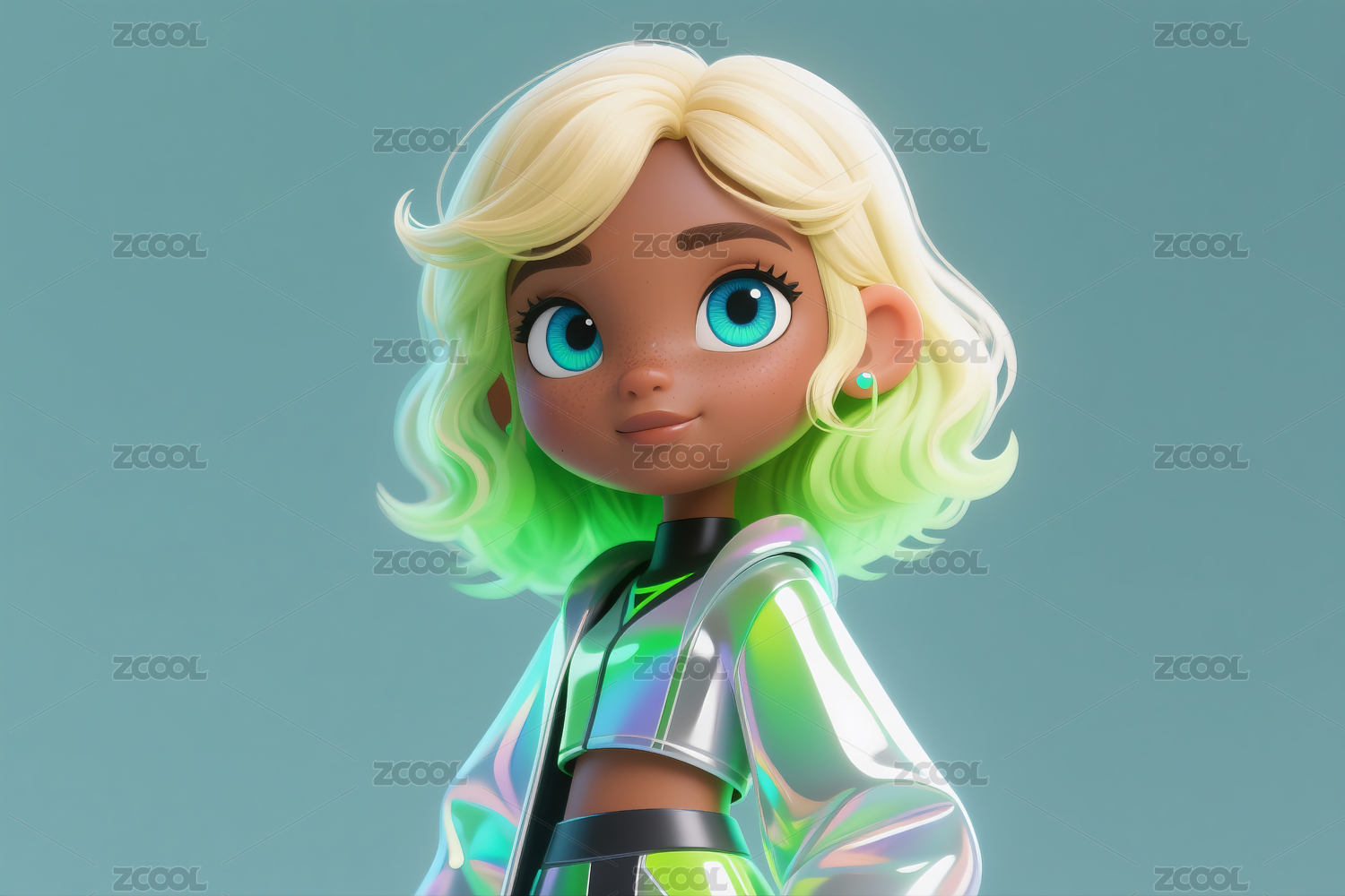 夏天室外可爱大眼睛微笑小女孩3D卡通插画