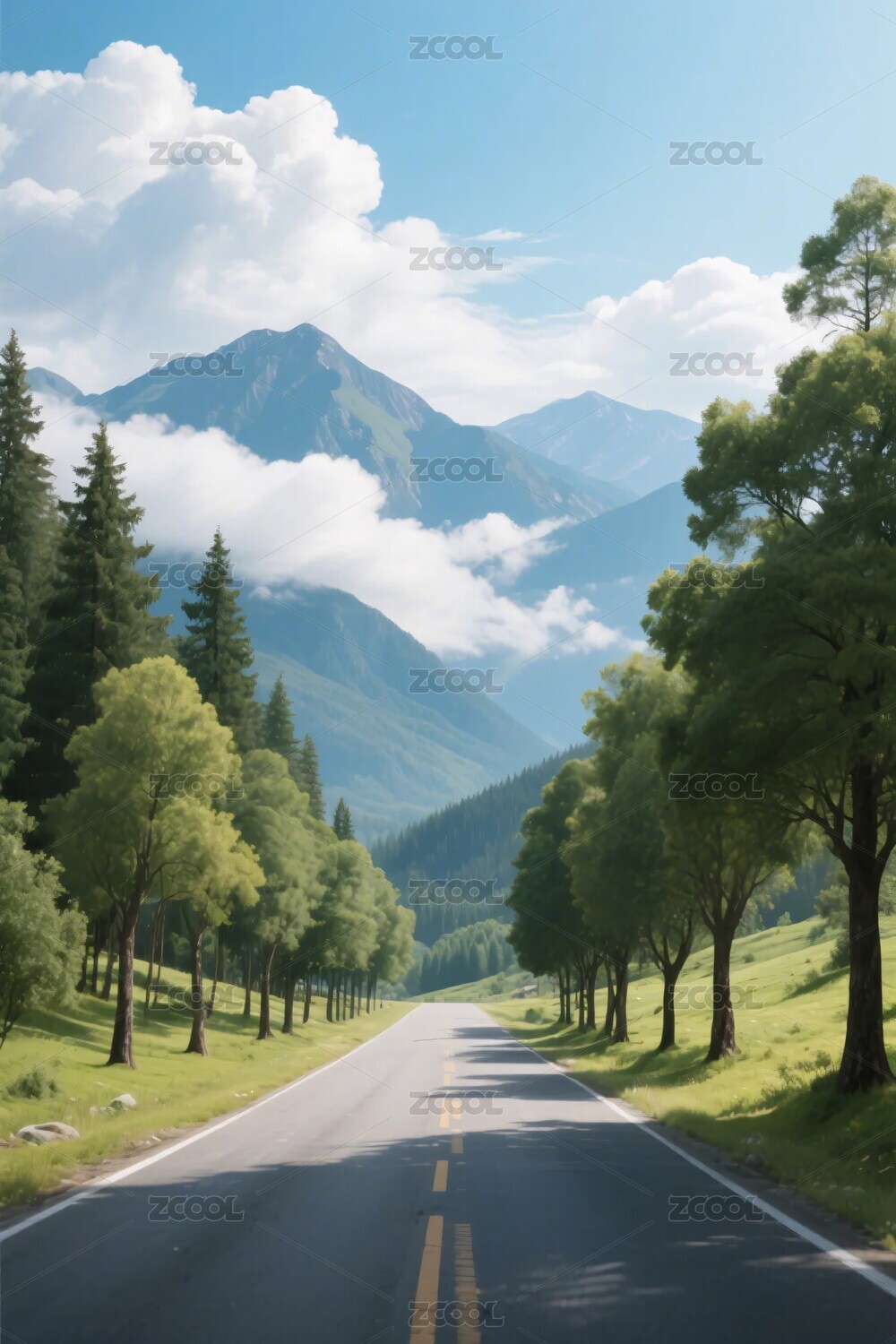 白桦林,道路,绿色,树木,公路,远方,延伸感,宁静,清新,阳光