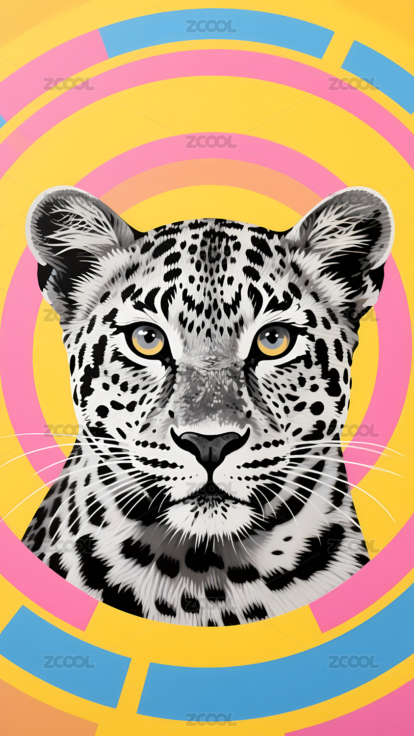 彩色豹子特写插画