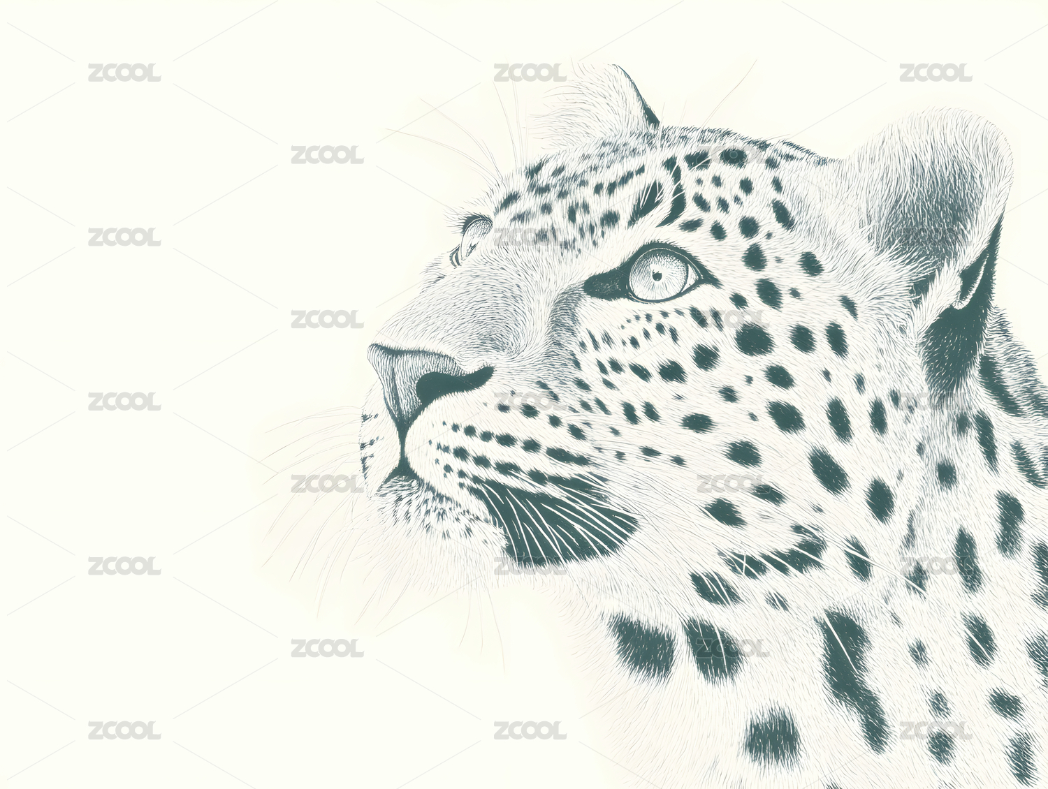 水彩豹子头像印花