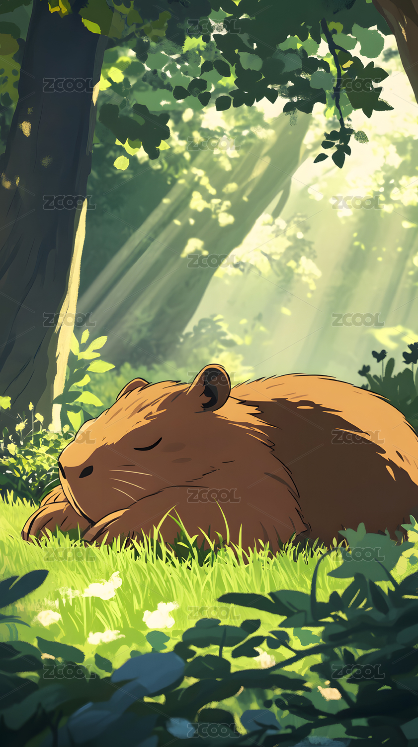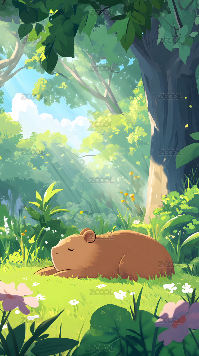 卡通动画可爱的水豚卡皮巴拉开心玩耍