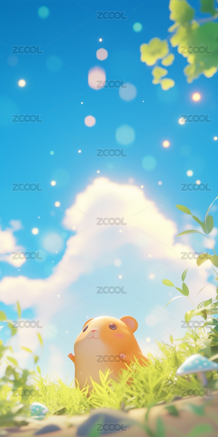 清新可爱田野里一只长胡须仓鼠3D卡通插画