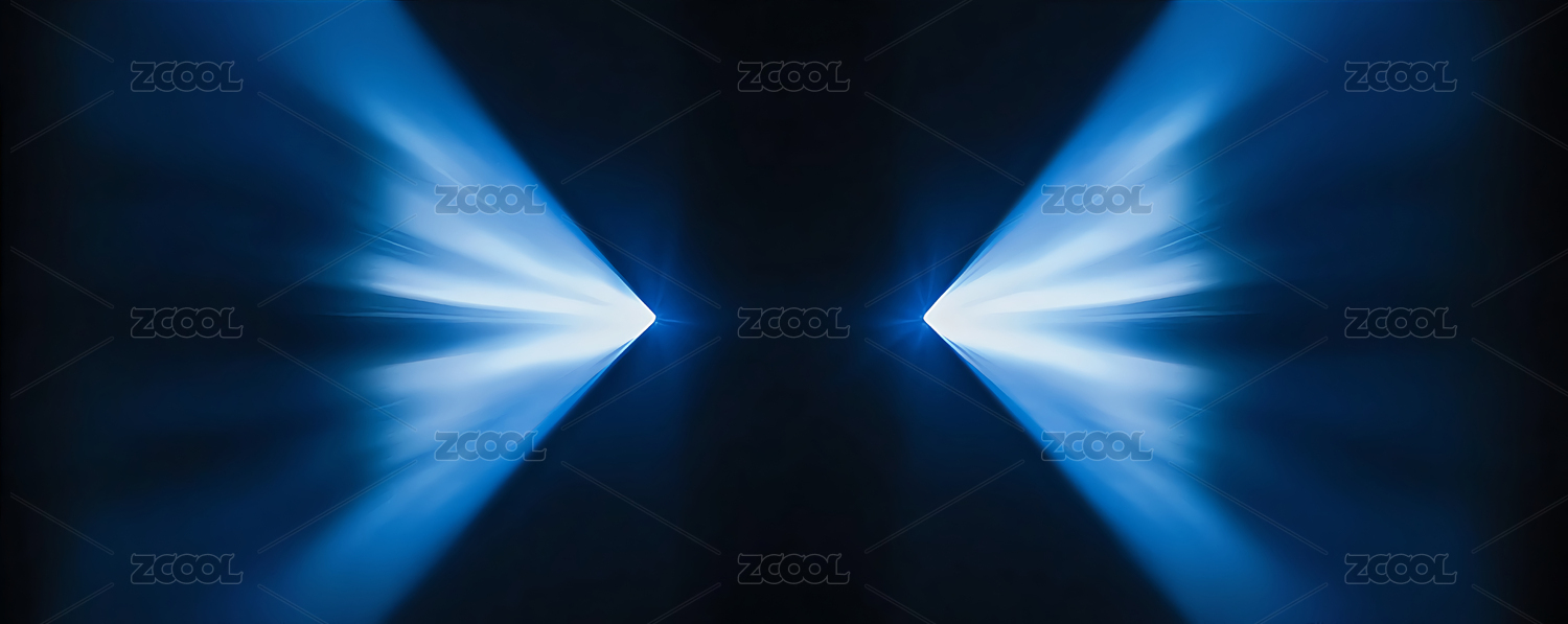 深黑色背景下的蓝色光束交汇
