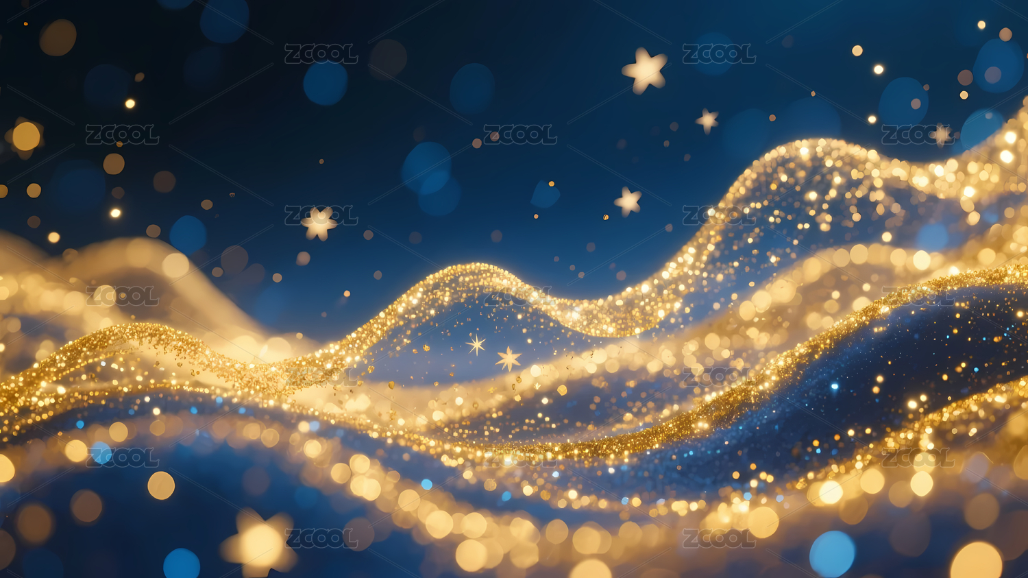 金色光带星星深蓝背景
