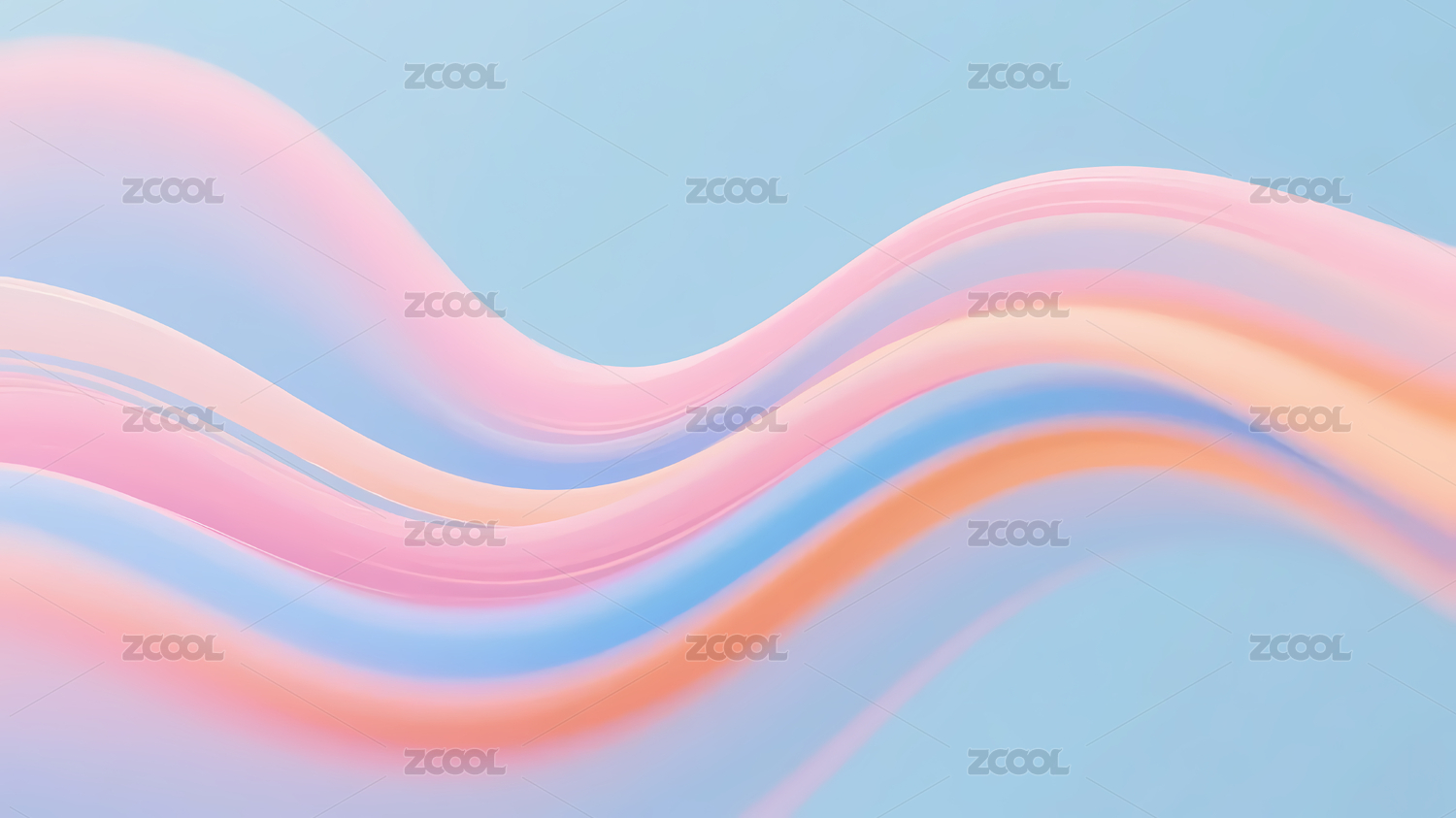 粉橙紫渐变波浪曲线与浅蓝色背景