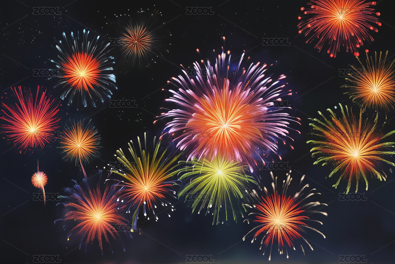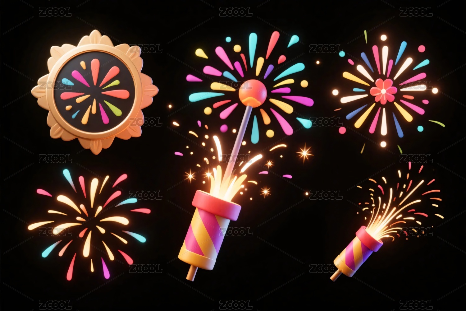 彩色烟花插画集合