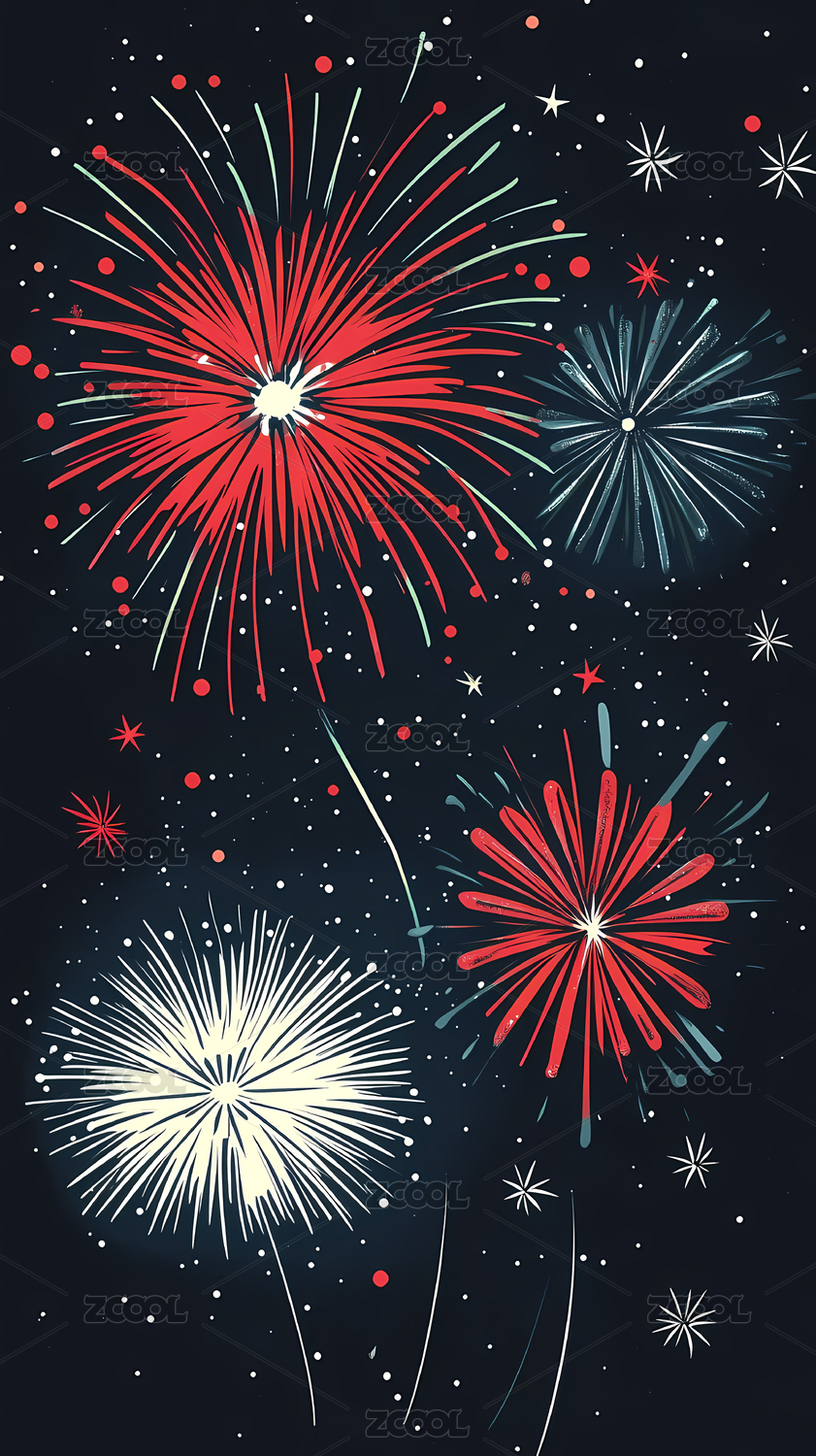 璀璨烟花与星星插画