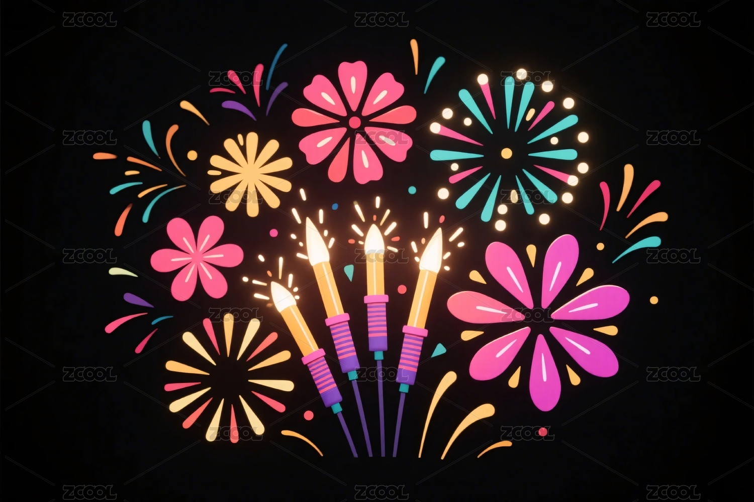 节日烟花花朵插画