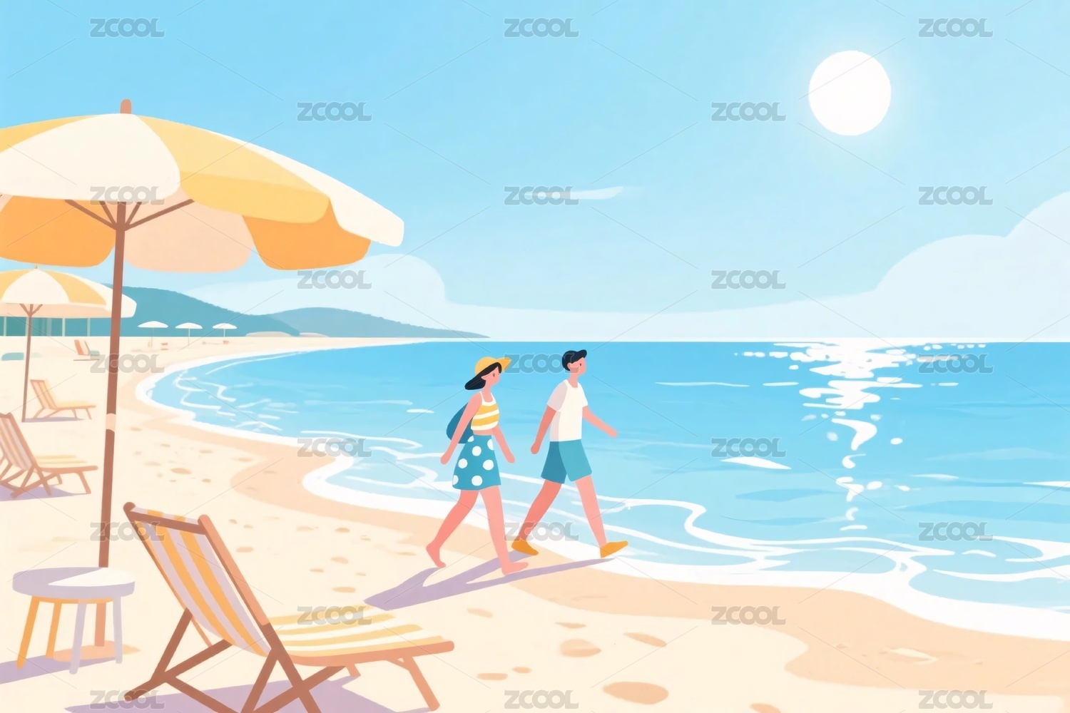 大暑节气海边旅行夏季海滩度假避暑矢量插画