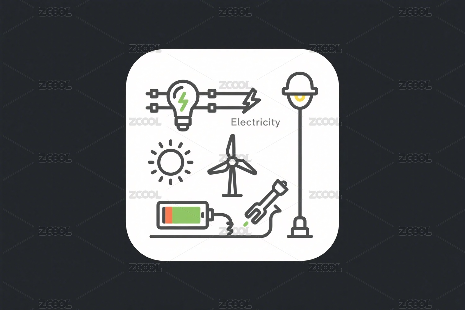 科技,图标,太阳能板,灯泡,电表,WiFi,相机,插头,能源,环保