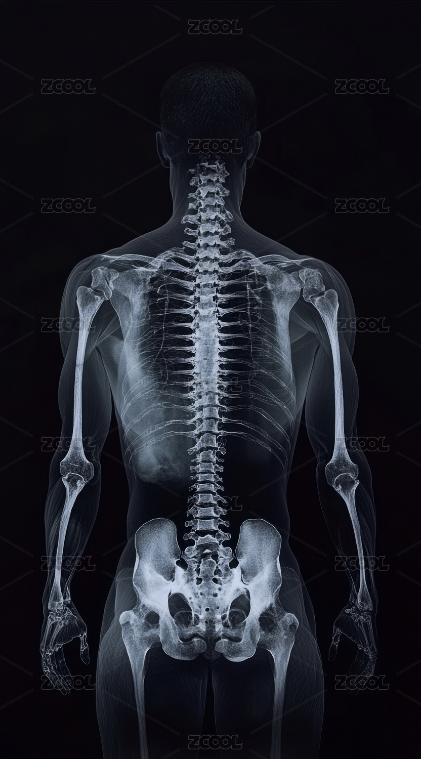 蓝色虚拟人体模型的橙色脊柱处有突出显示