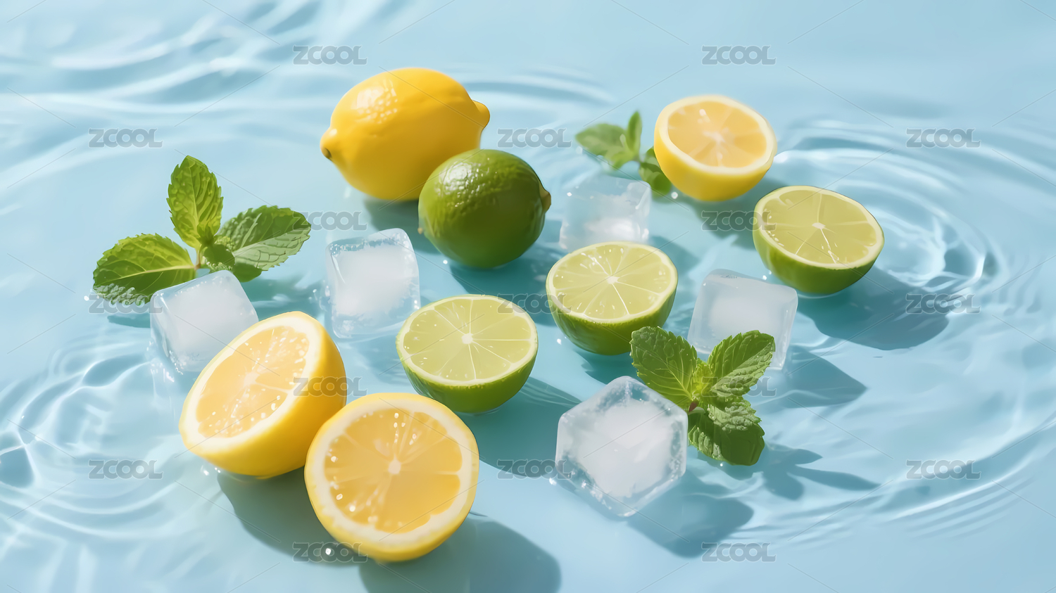 阳光,摄影,清新,三维,质感,艺术,柠檬,冰块,薄荷,清凉