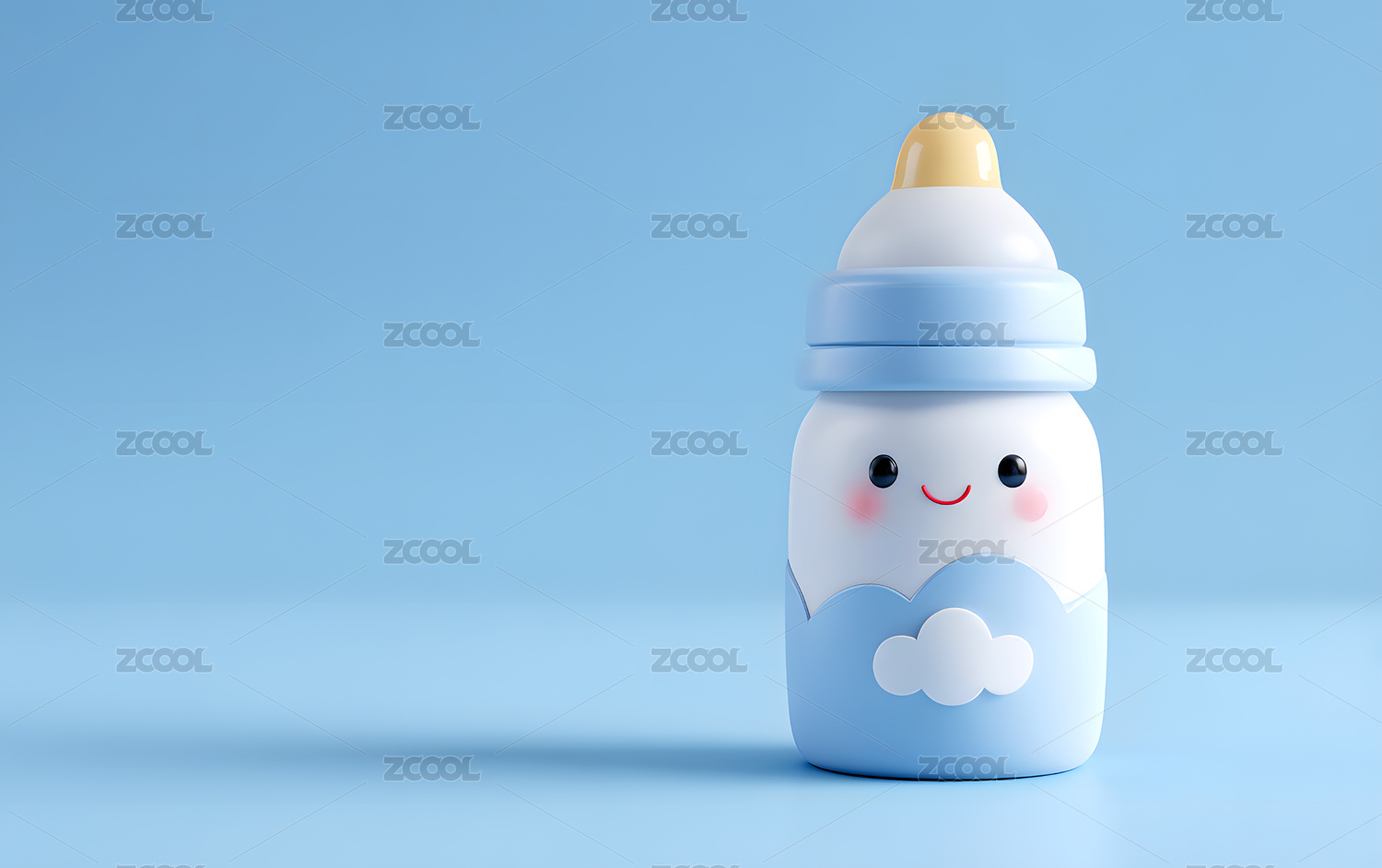 婴儿奶瓶,木制玩偶,小熊玩偶,小鹿玩偶,彩色球,婴儿床,母婴用品,插画,温馨,柔和