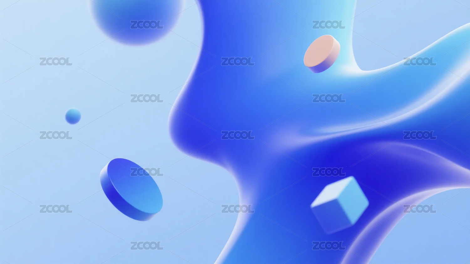 蓝色3D商务科技几何抽象漂浮物背景