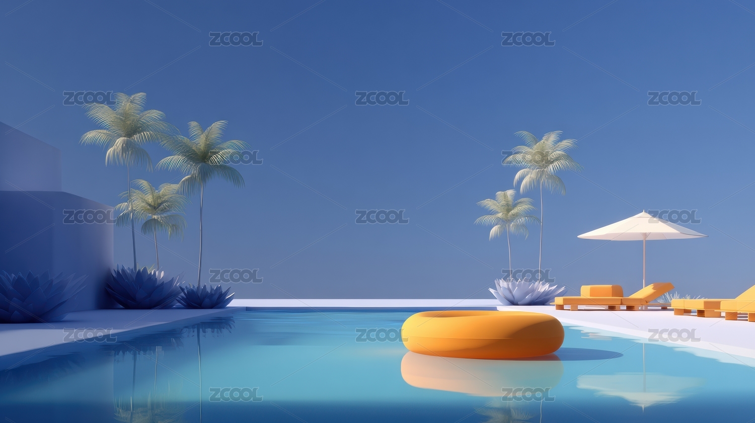 数码黄色太阳伞游泳池场景图形